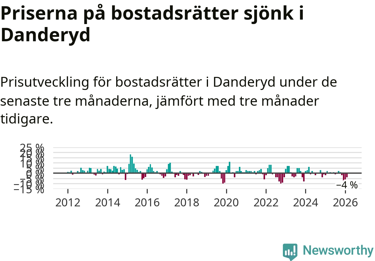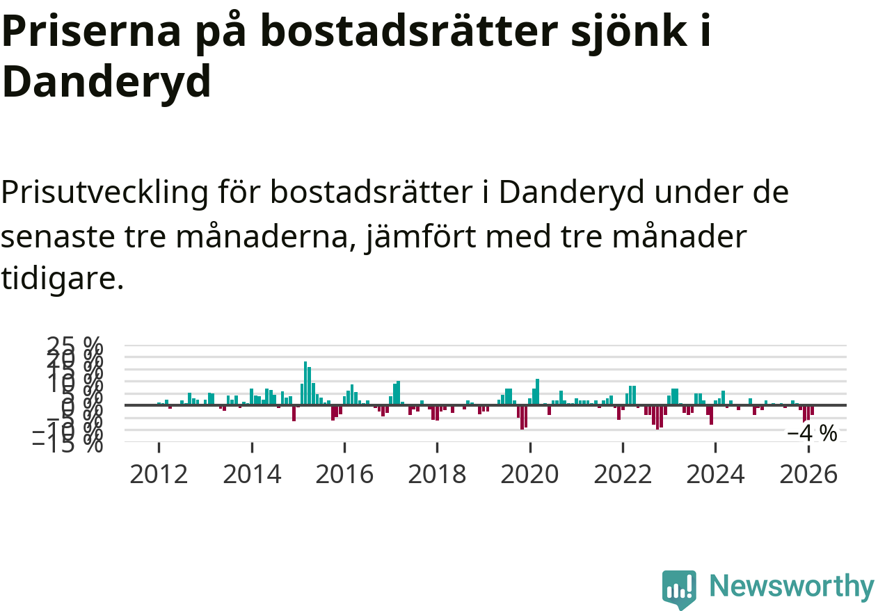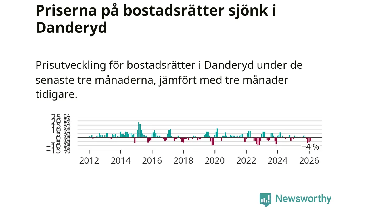Priserna på bostadsrätter har gått ner i Danderyds kommun. Medelpriset på försäljningarna under de senaste tre månaderna visar på en nedgång med 4 procent.