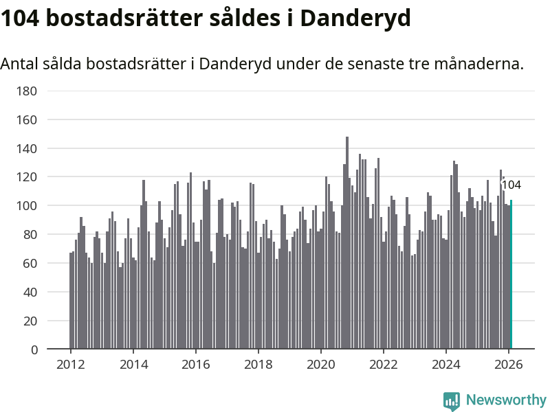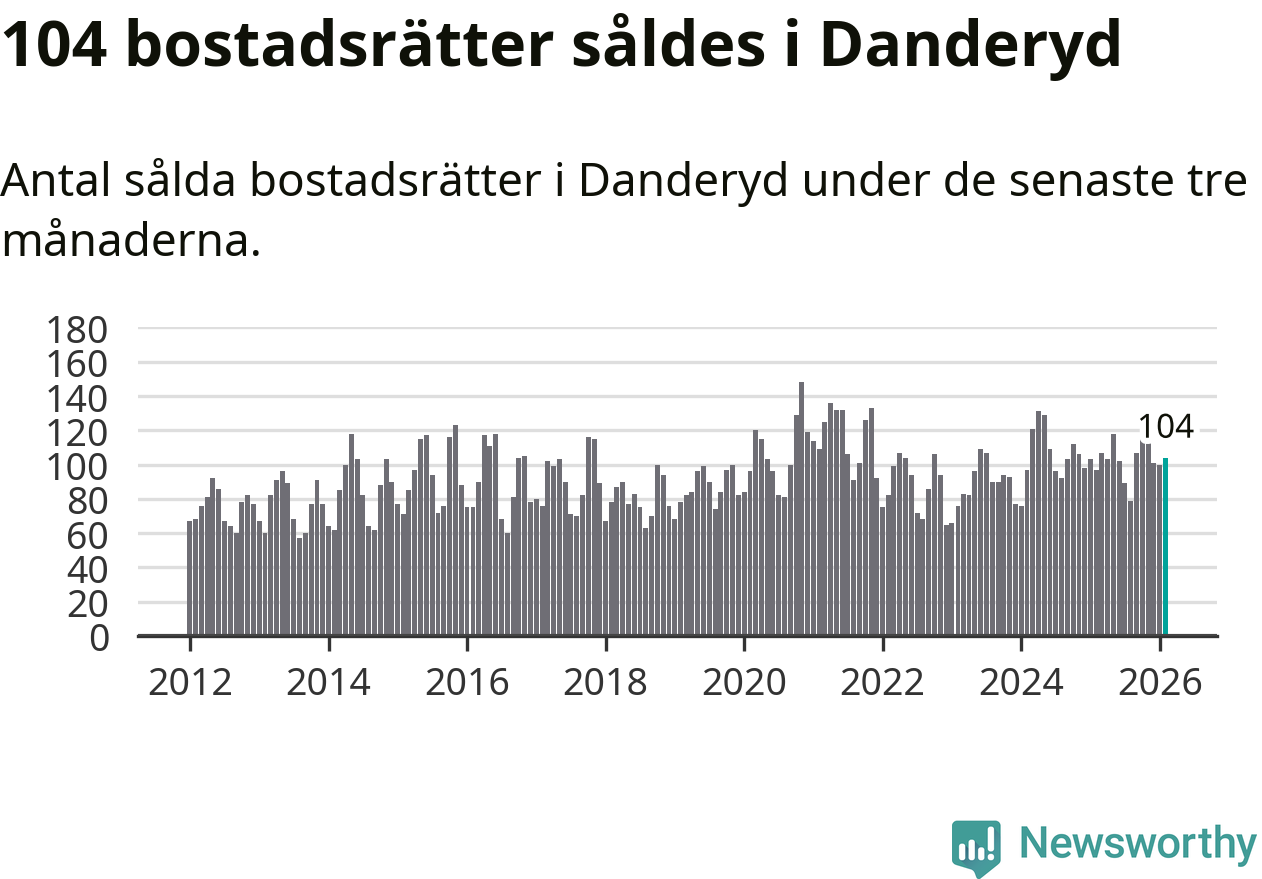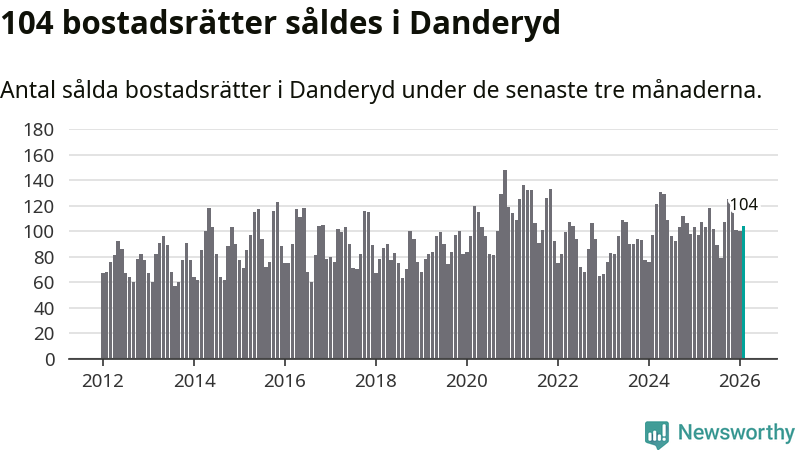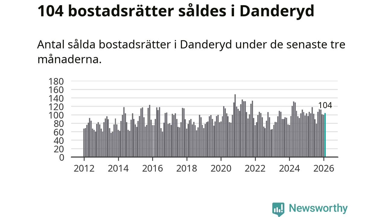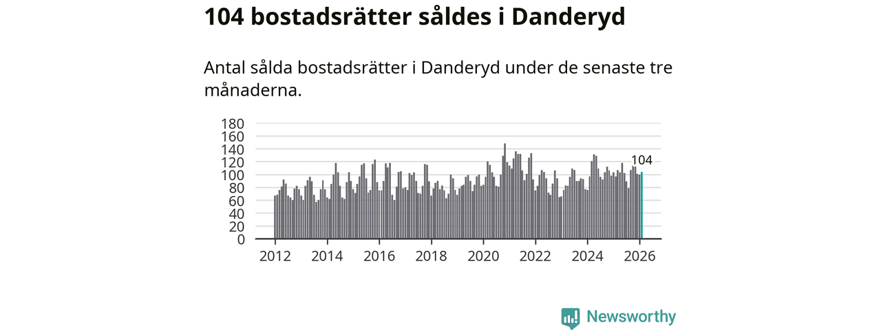 Sammanlagt såldes 104 bostadsrätter i Danderyds kommun mellan december och februari till ett genomsnittligt pris på 4,1 miljoner kronor. I fjol gjordes 97 affärer vid den här tiden på året.