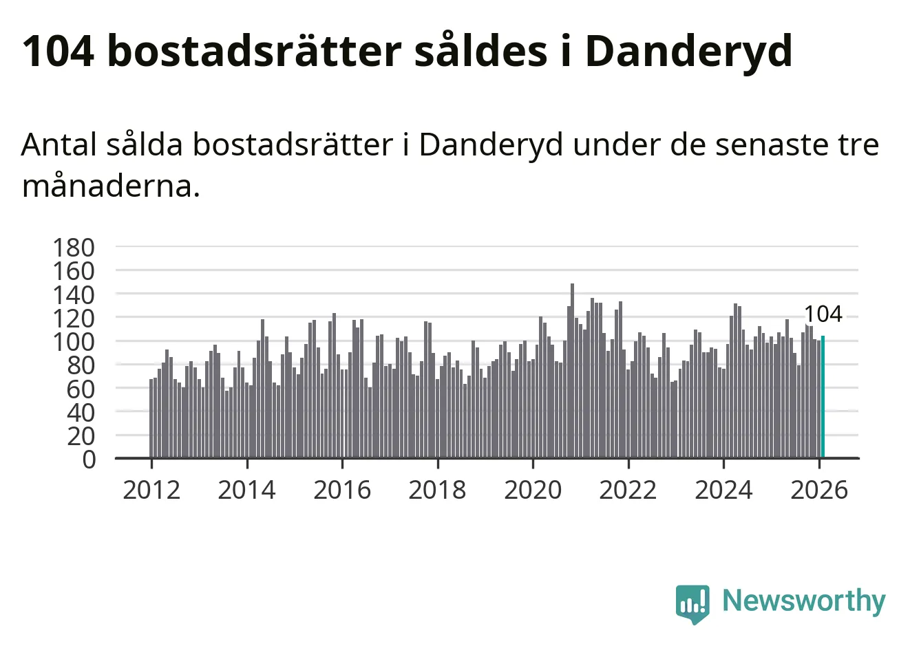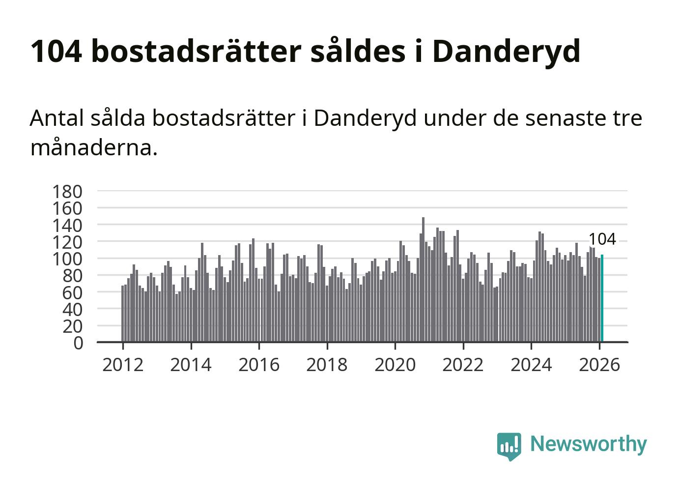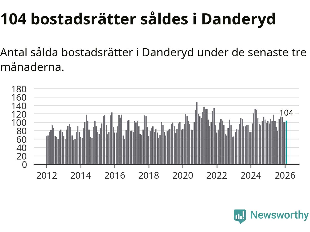 Sammanlagt såldes 104 bostadsrätter i Danderyds kommun mellan december och februari till ett genomsnittligt pris på 4,1 miljoner kronor. I fjol gjordes 97 affärer vid den här tiden på året.