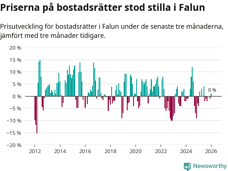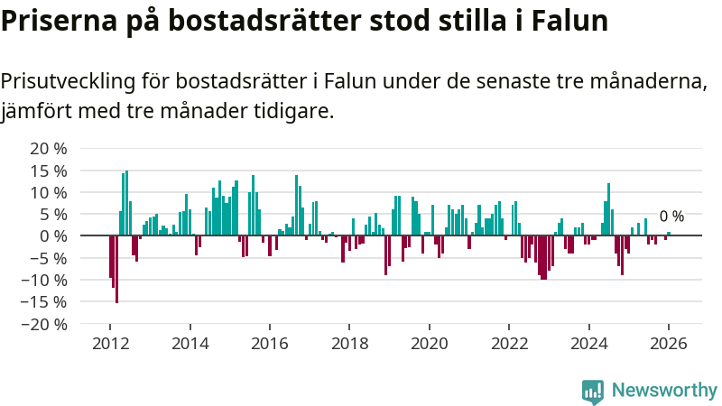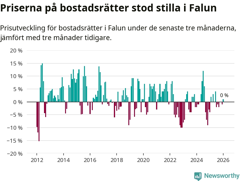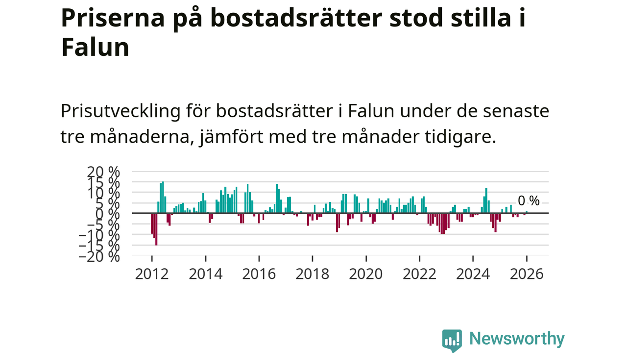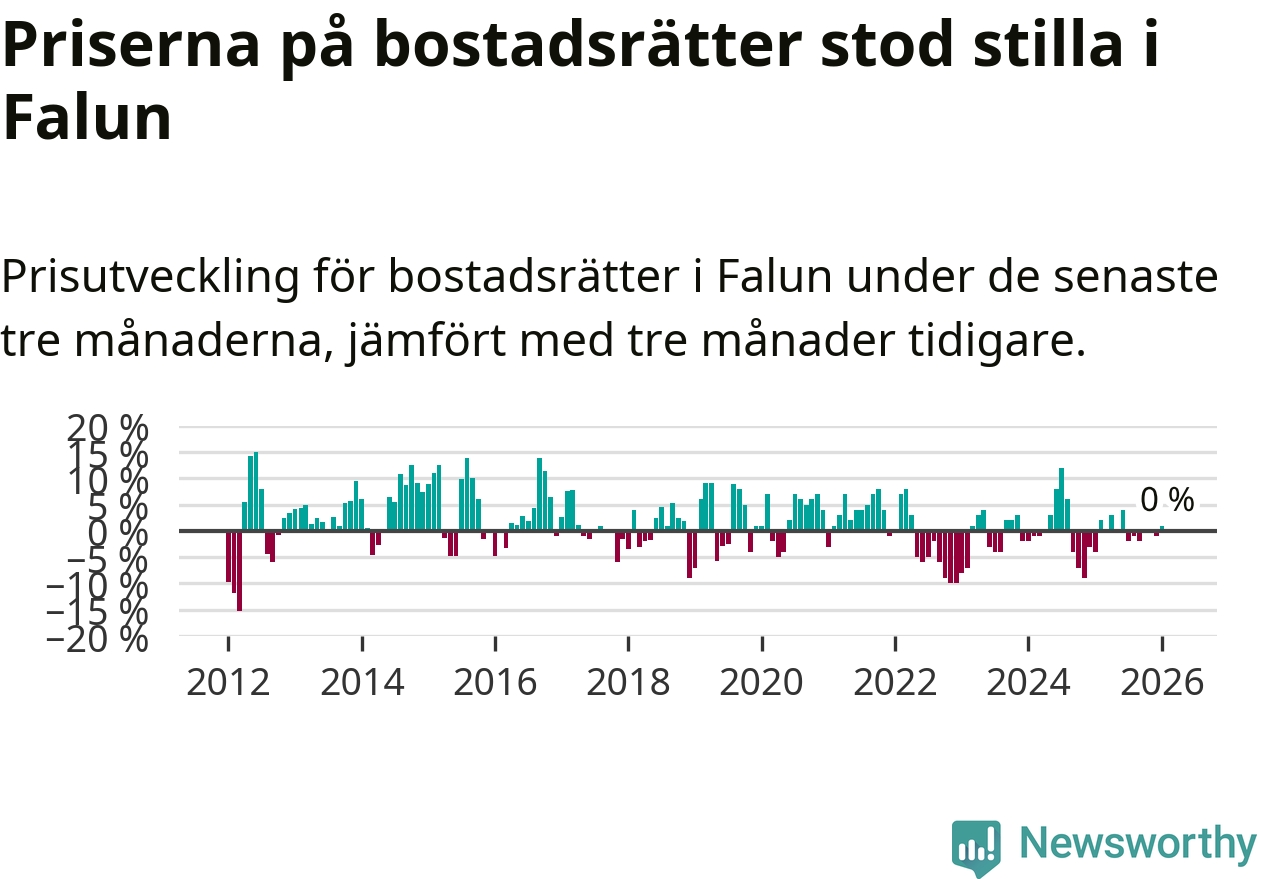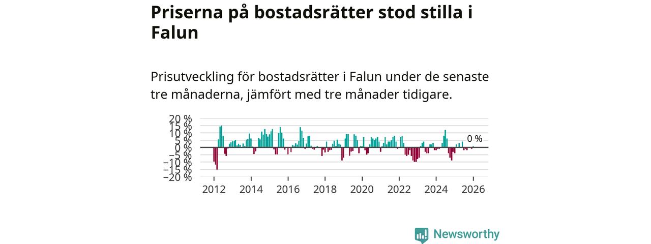 Priserna på bostadsrätter står i stort sett stilla i Falu kommun. Medelpriset på de på försäljningarna under de senaste tre månaderna låg på samma nivå som för tre månader sedan.