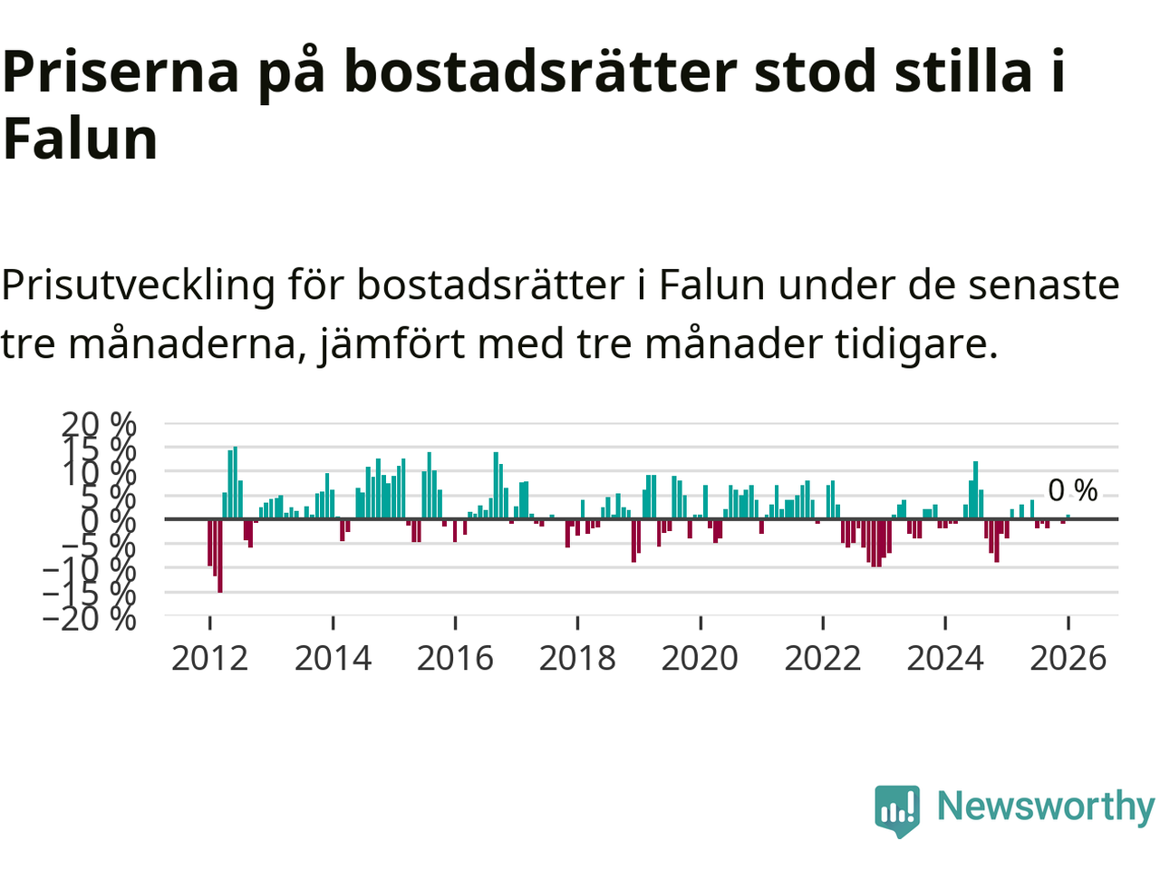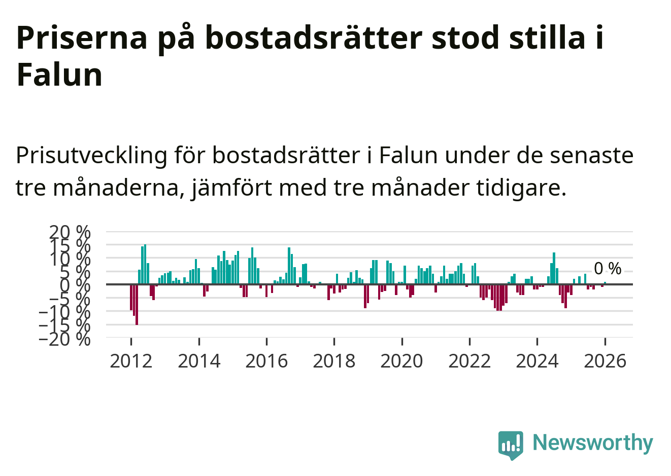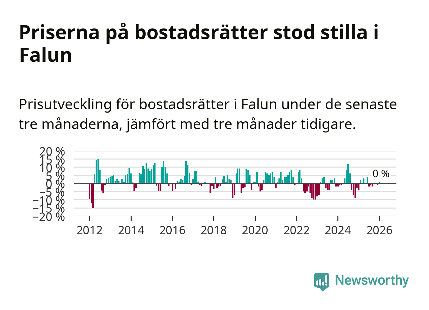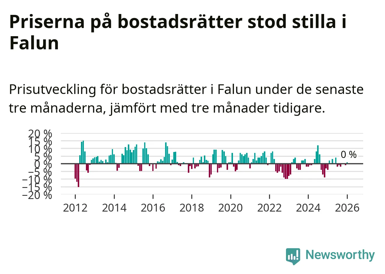 Priserna på bostadsrätter står i stort sett stilla i Falu kommun. Medelpriset på de på försäljningarna under de senaste tre månaderna låg på samma nivå som för tre månader sedan.