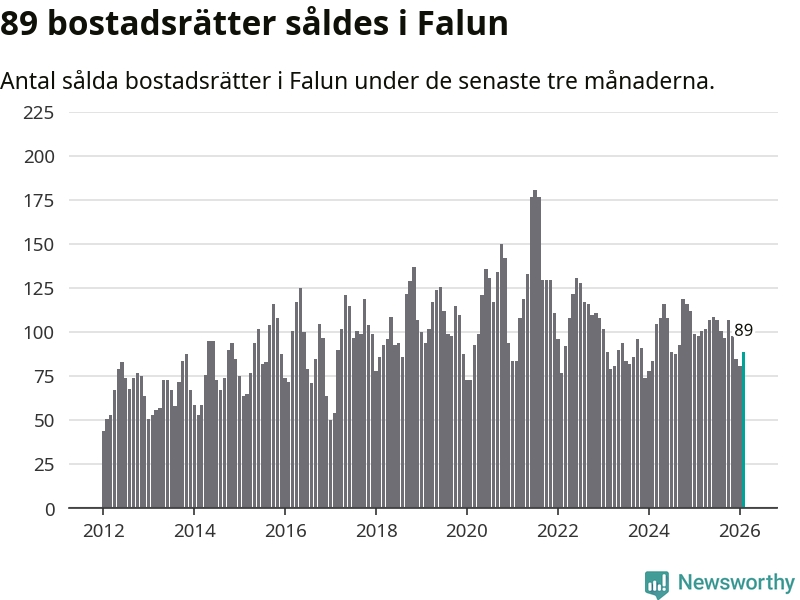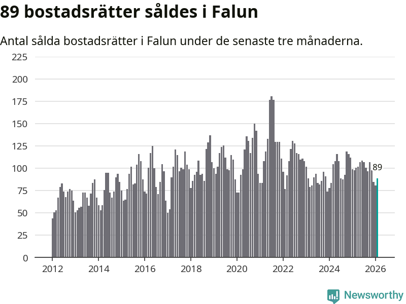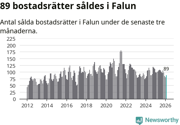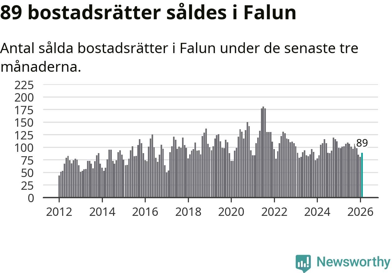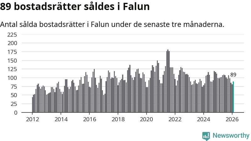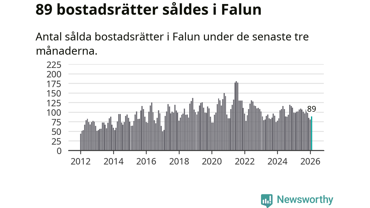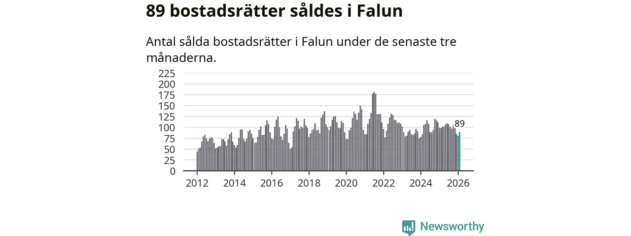 Sammanlagt såldes 89 bostadsrätter i Falu kommun mellan december och februari till ett genomsnittligt pris på 1,8 miljoner kronor. I fjol gjordes 98 affärer vid den här tiden på året.