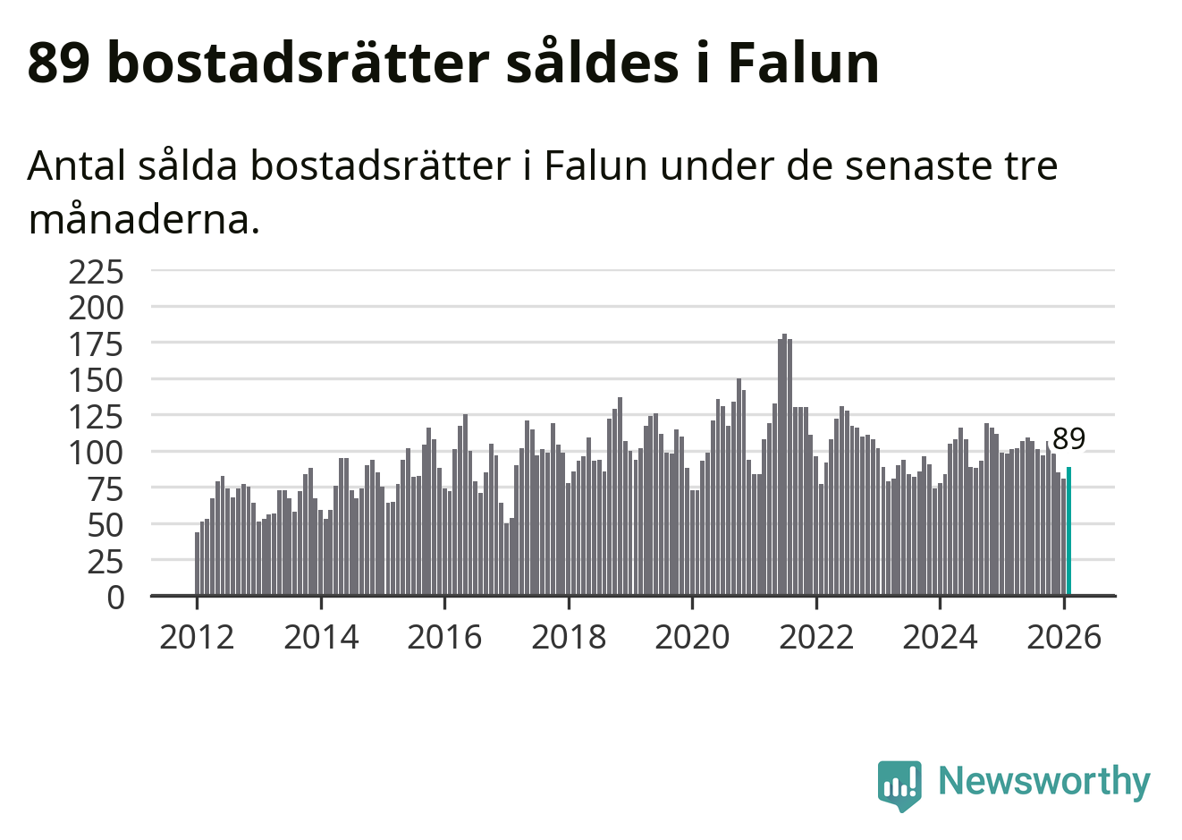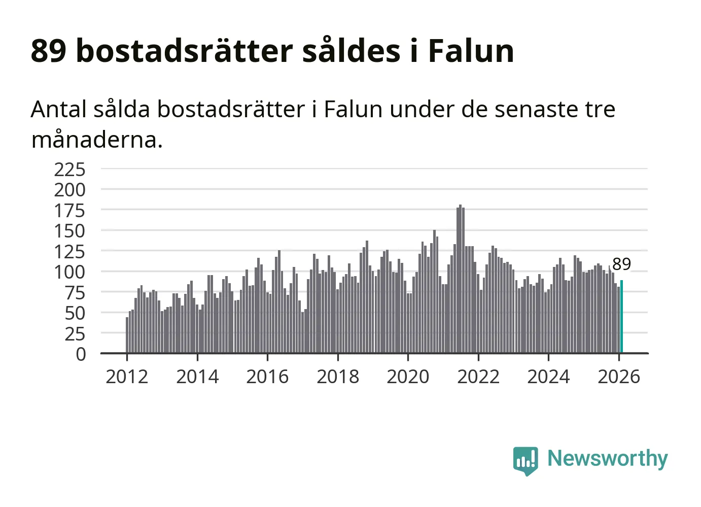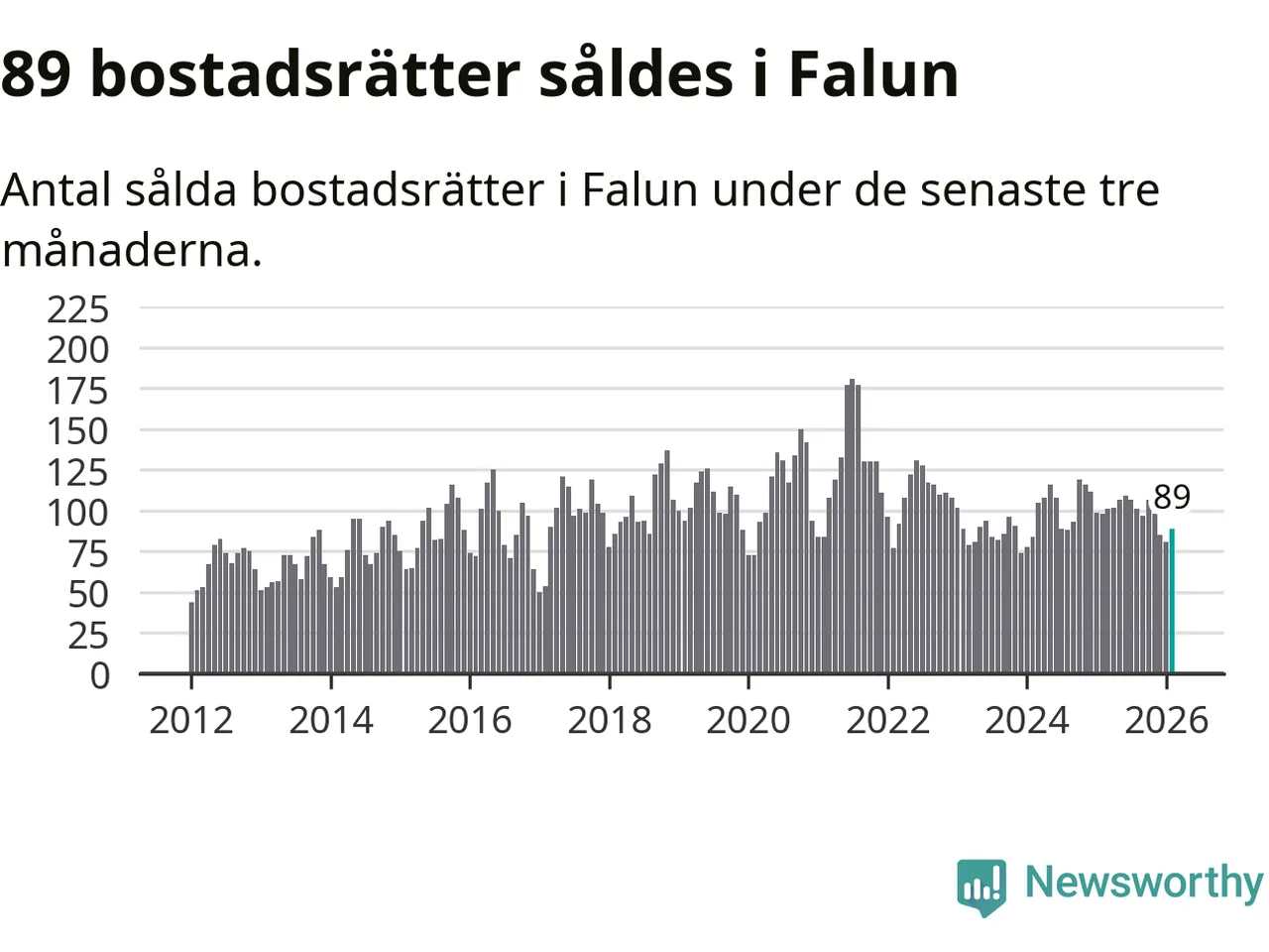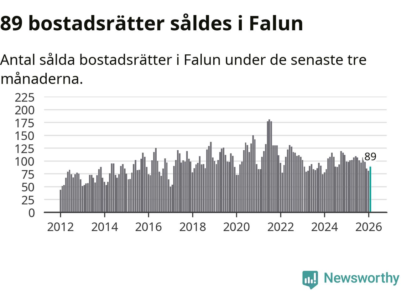 Sammanlagt såldes 89 bostadsrätter i Falu kommun mellan december och februari till ett genomsnittligt pris på 1,8 miljoner kronor. I fjol gjordes 98 affärer vid den här tiden på året.