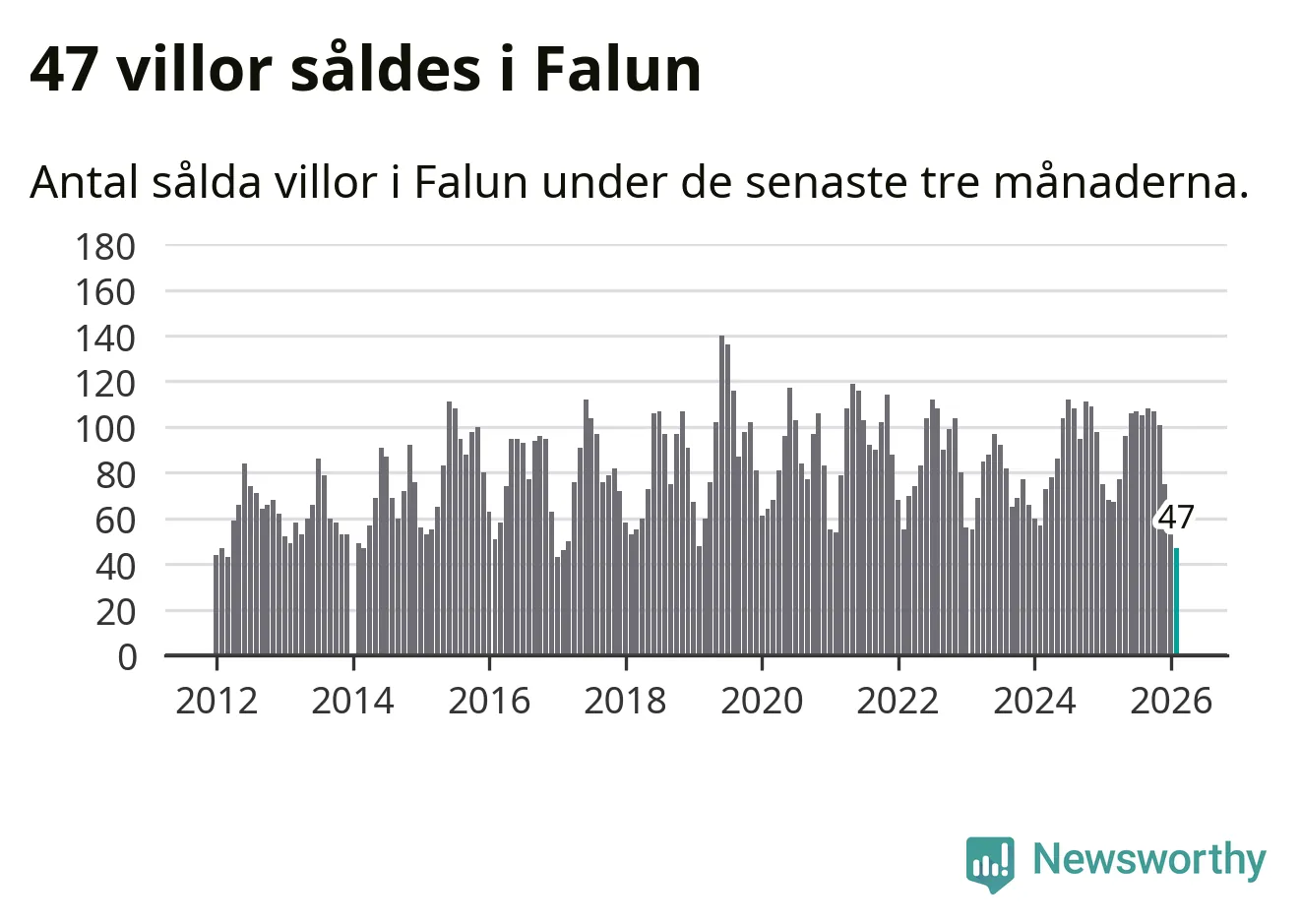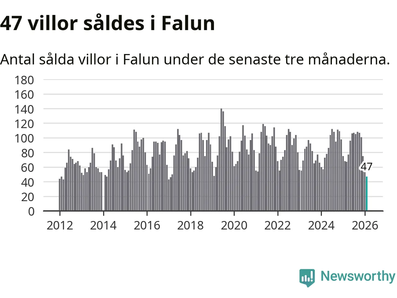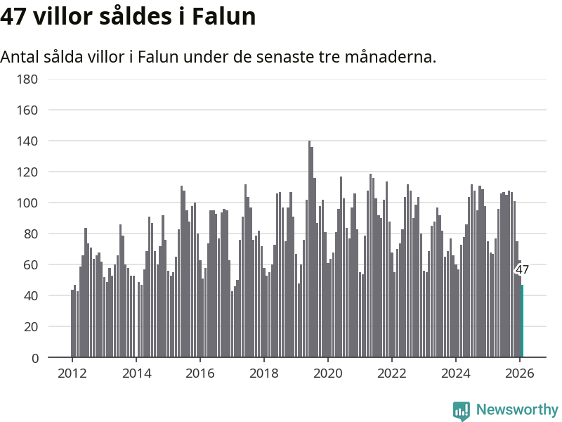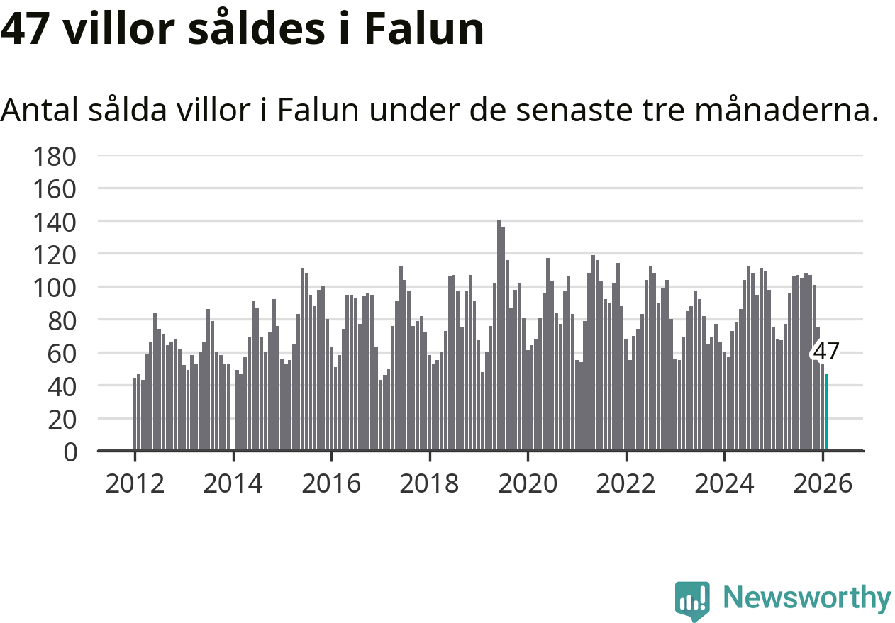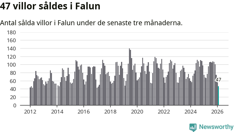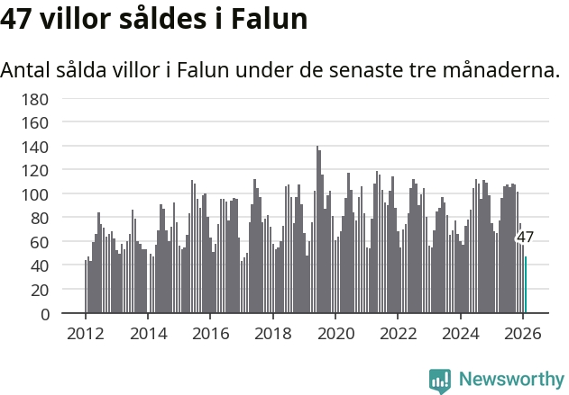 Mellan december och februari såldes 47 villor i Falu kommun. Det är färre än någon tremånadersperiod sedan 2017.