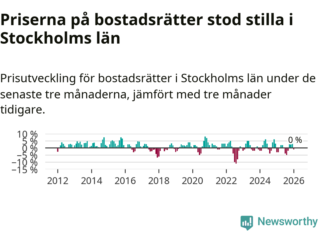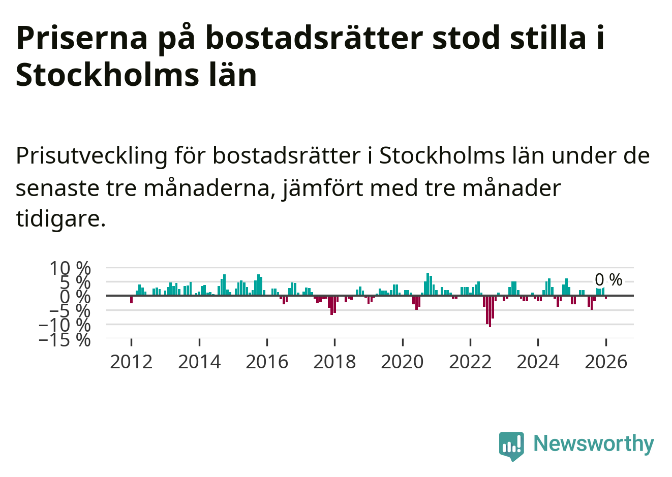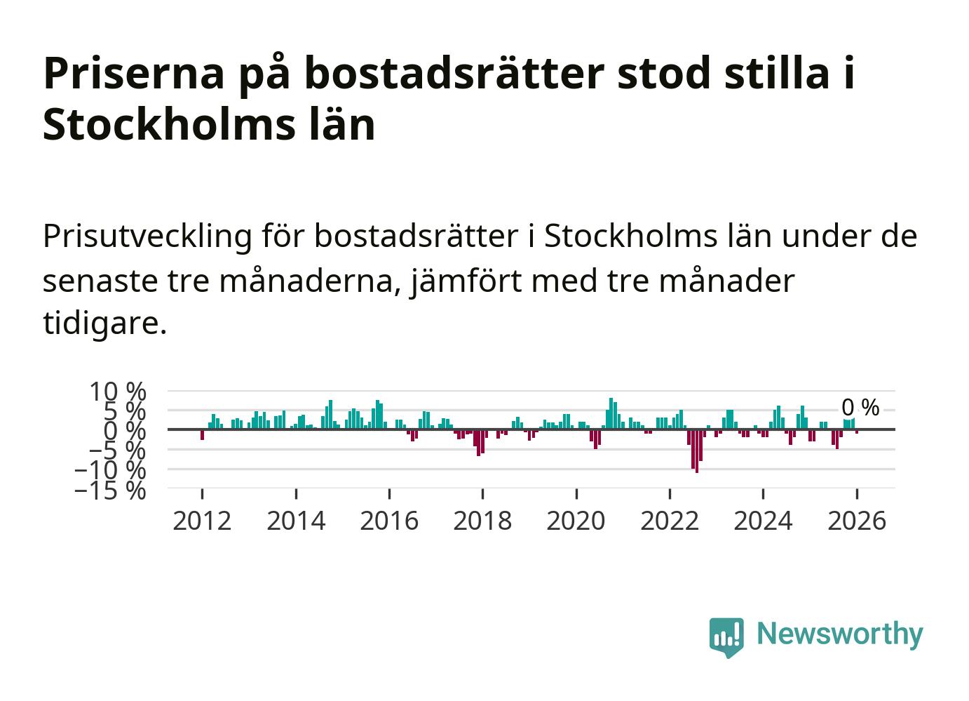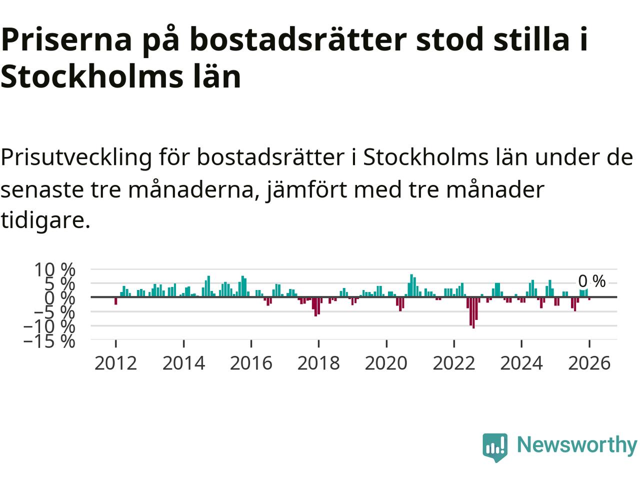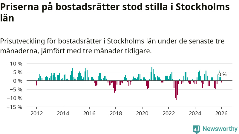 Även i hela Sverige ligger priserna på bostadsrätter stilla.
