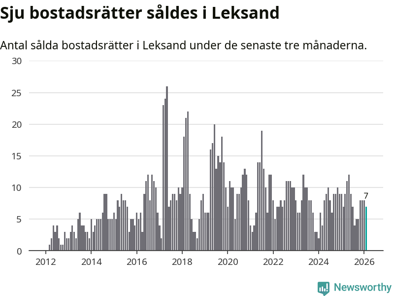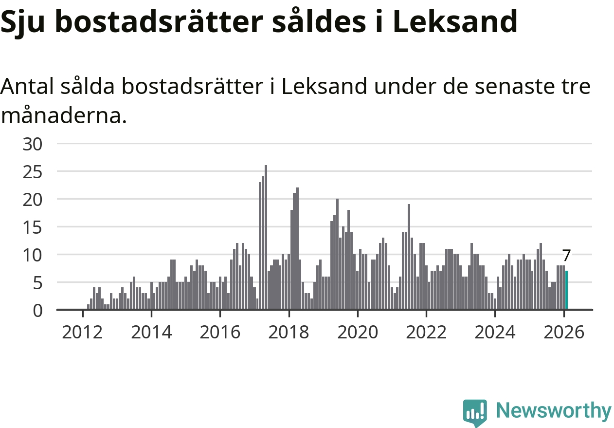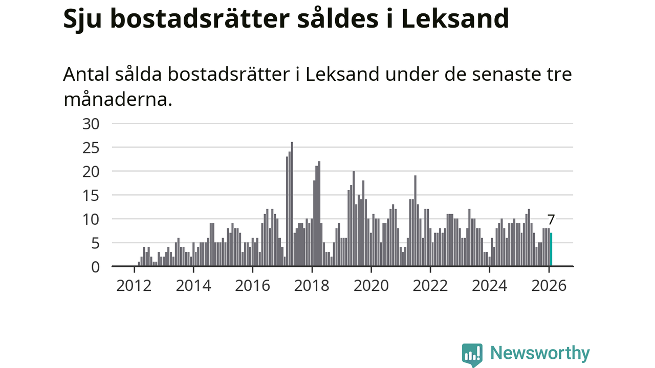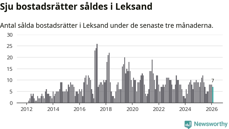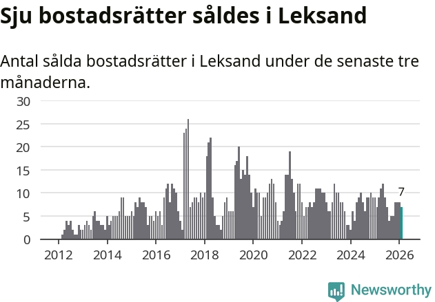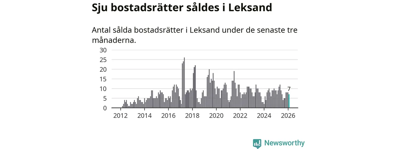 Mellan december och februari gjordes sammanlagt sju affärer med bostadsrätter i Leksands kommun. Det är lika många affärer som vid motsvarande tid i fjol.