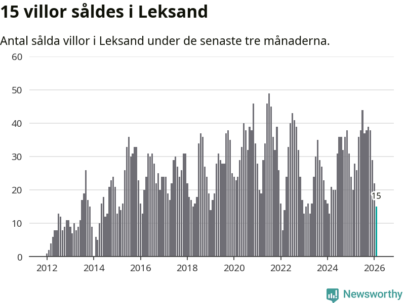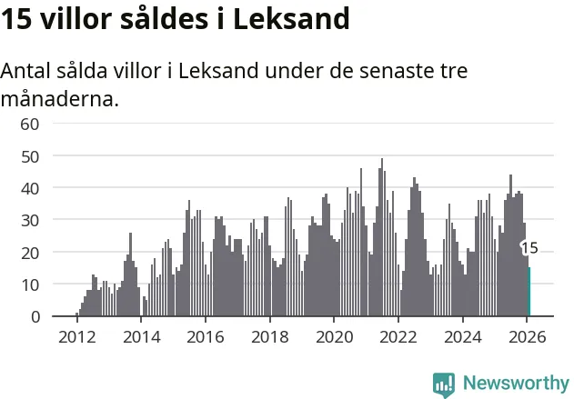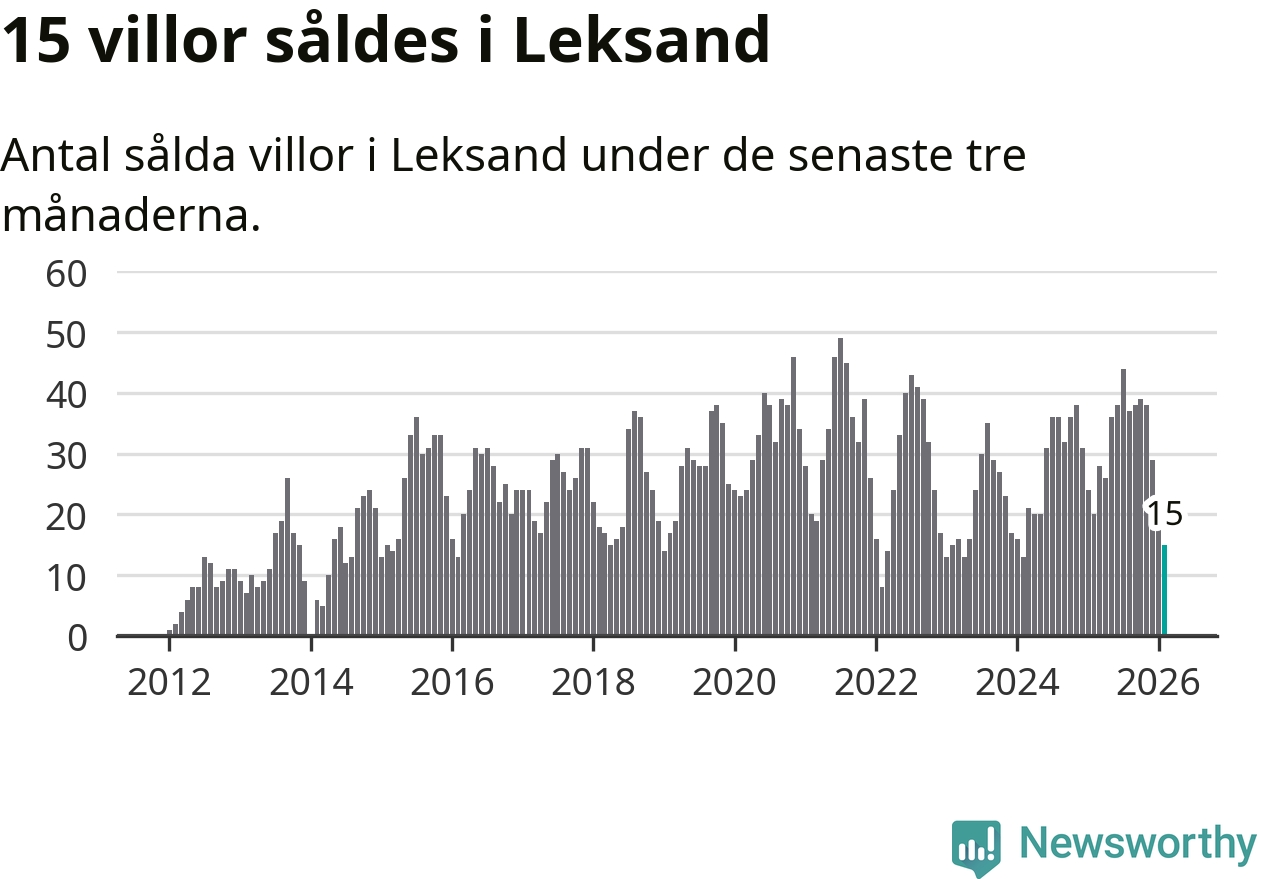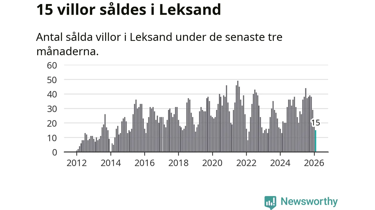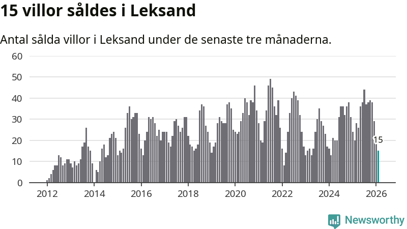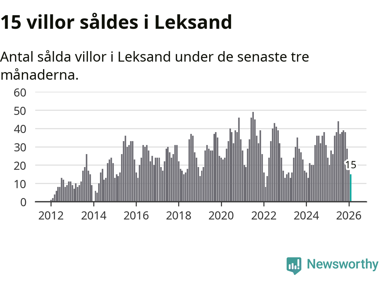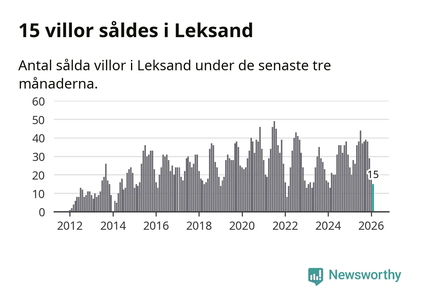 Mellan december och februari gjordes sammanlagt 15 affärer med villor i Leksands kommun. Det kan jämföras med 20 vid motsvarande tid i fjol.