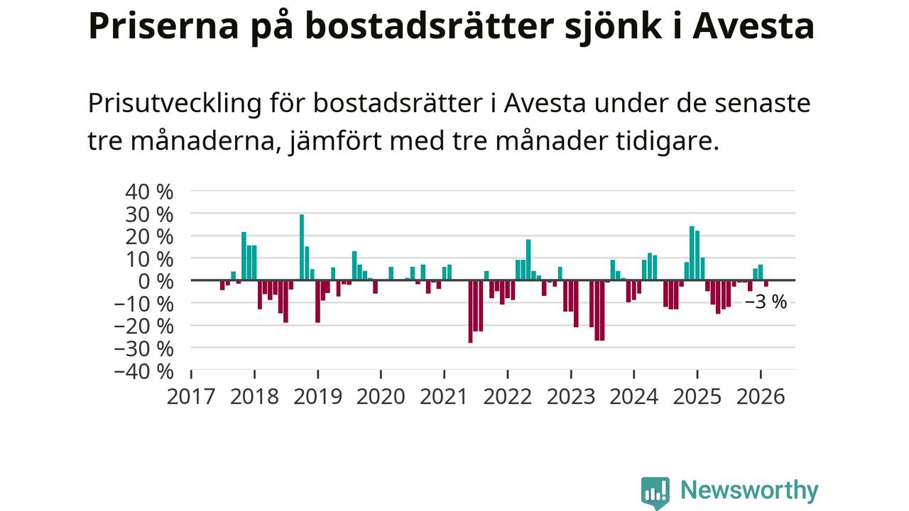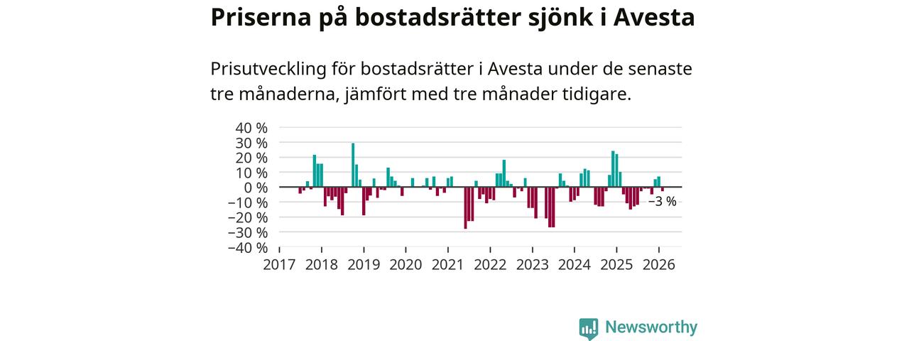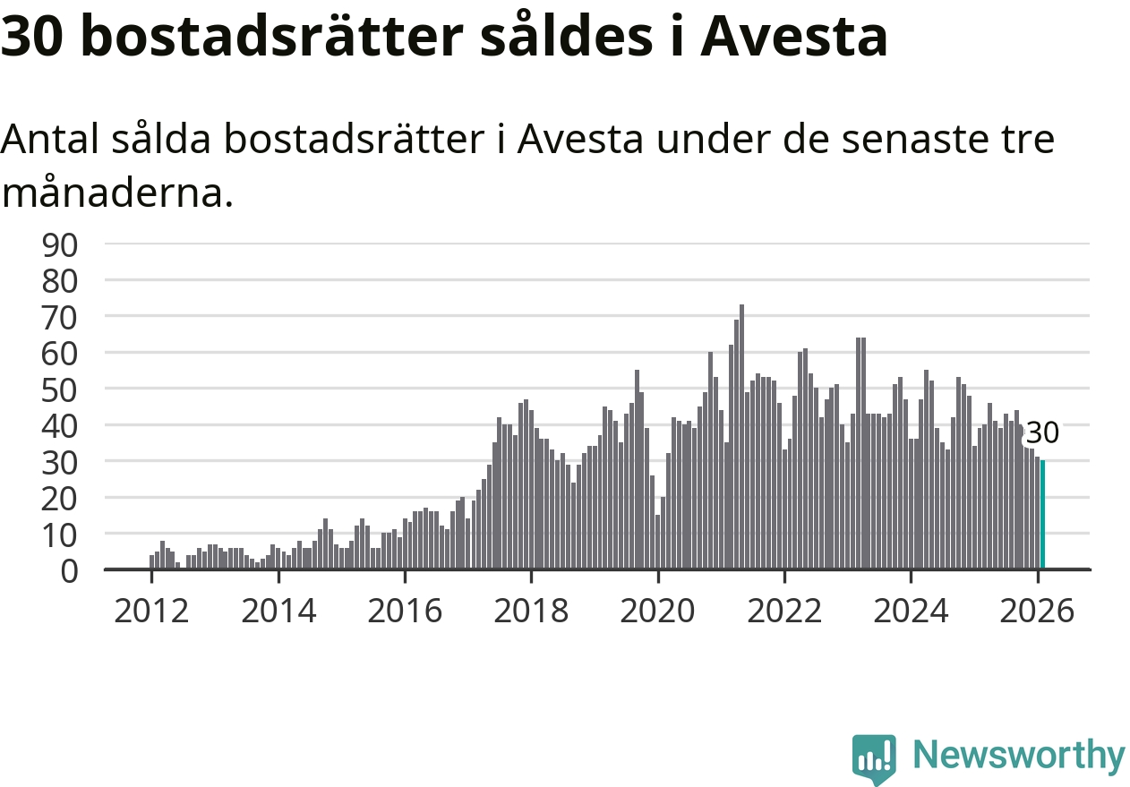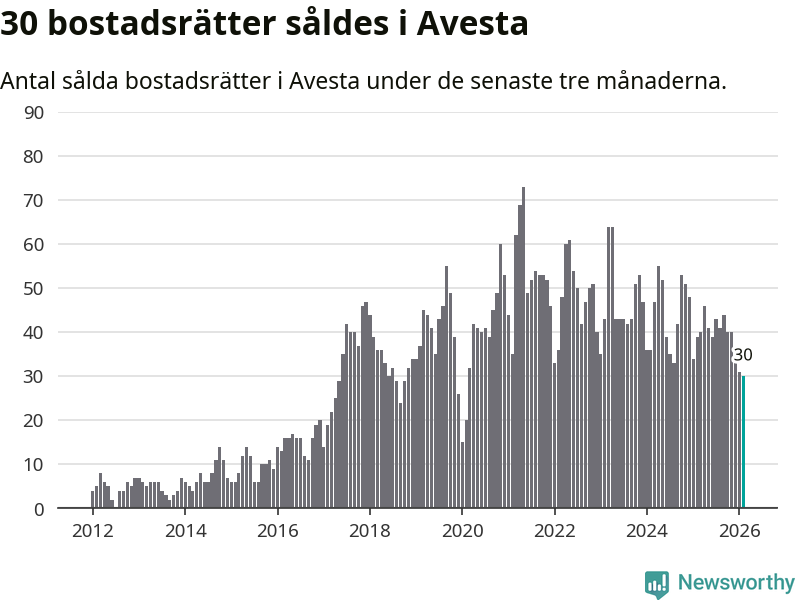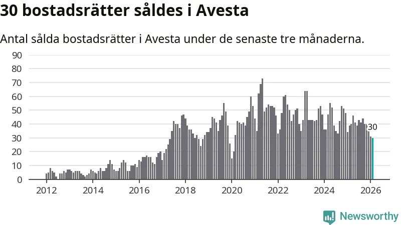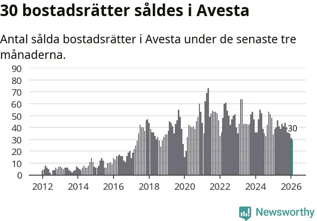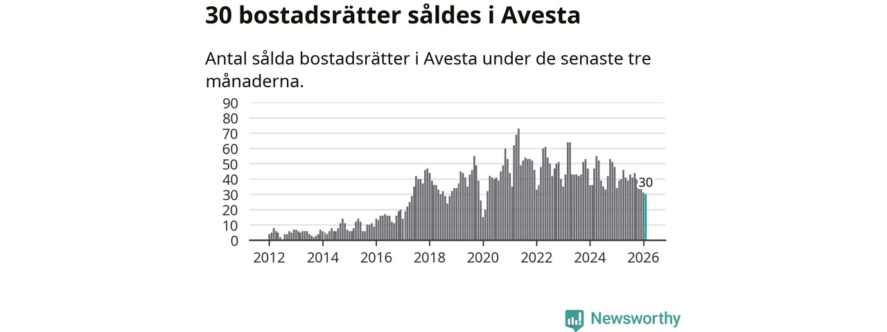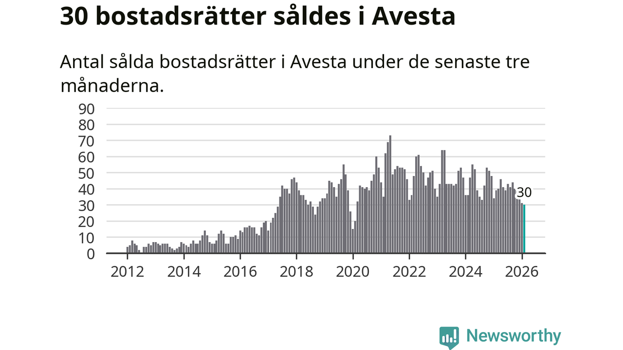 Mellan december och februari såldes 30 bostadsrätter i Avesta kommun. Det är färre än någon tremånadersperiod sedan 2020.