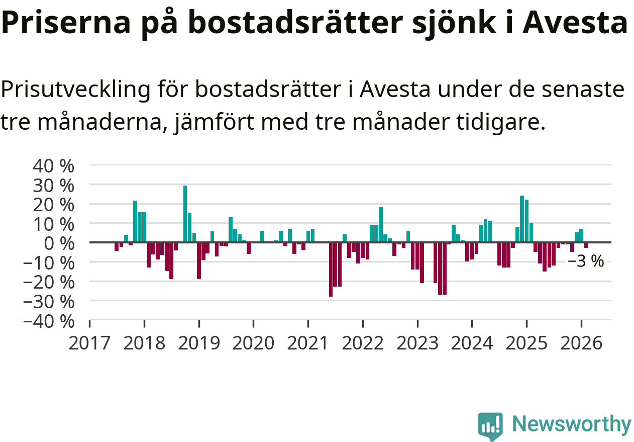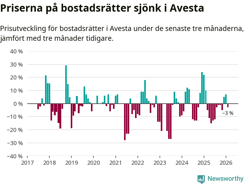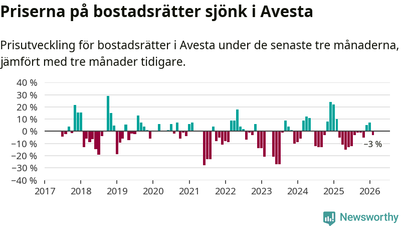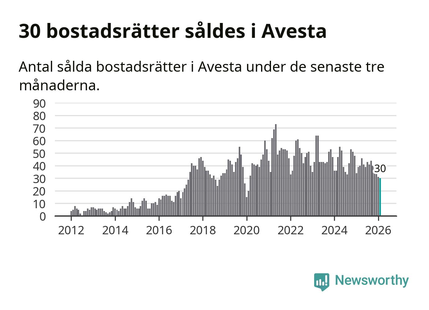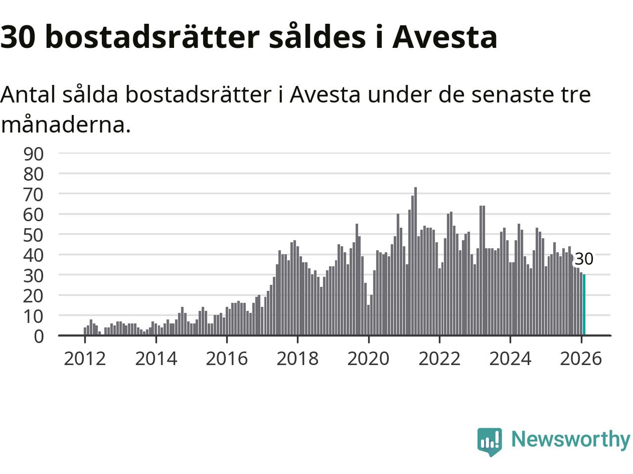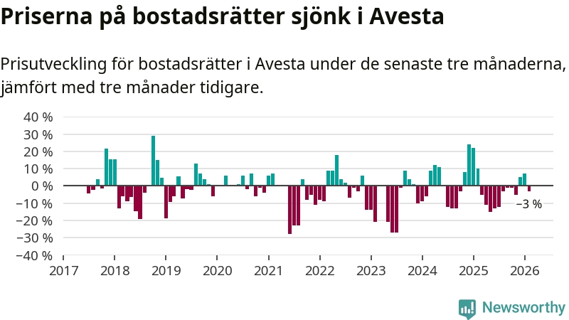 Mellan december och februari såldes 30 bostadsrätter i Avesta kommun. Det är färre än någon tremånadersperiod sedan 2020.