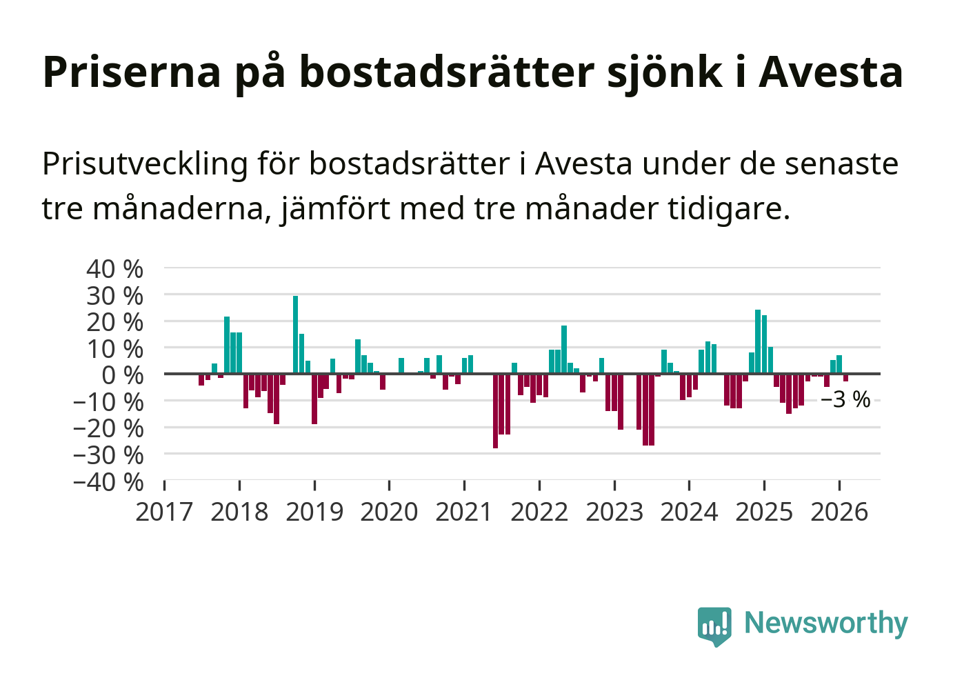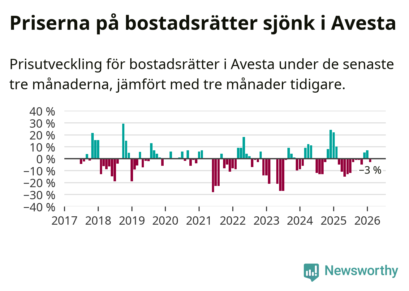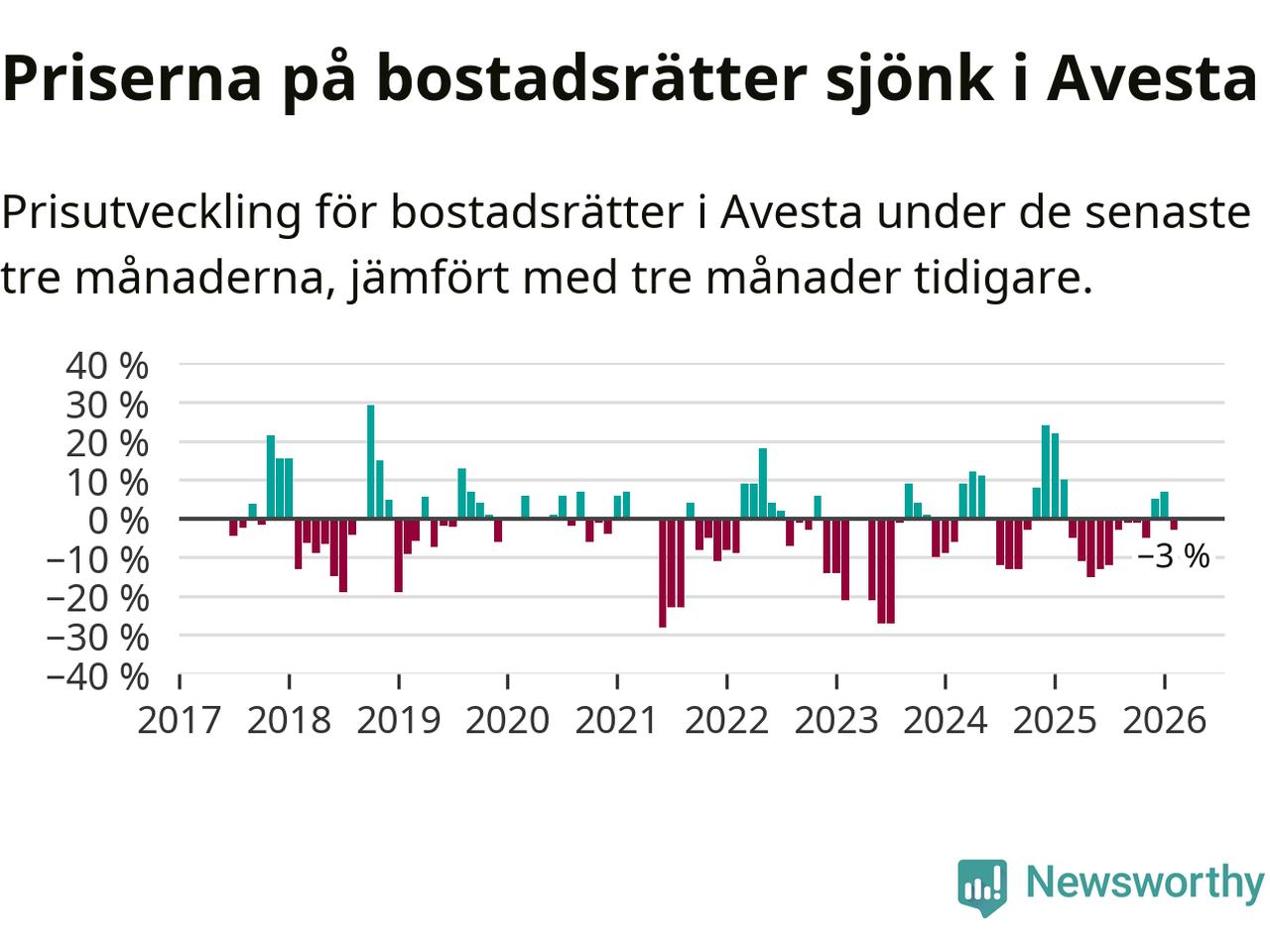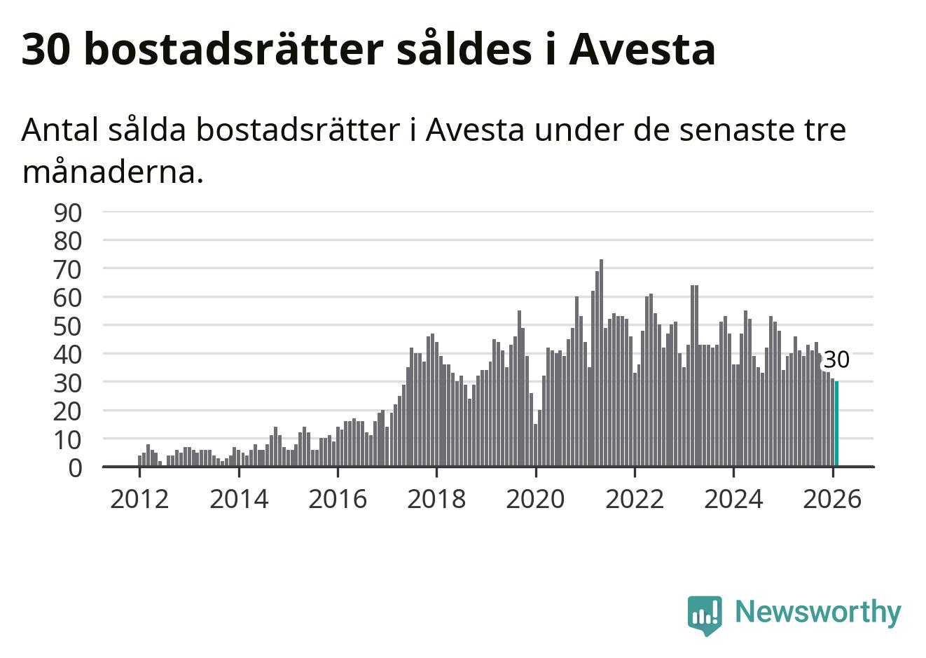 Mellan december och februari såldes 30 bostadsrätter i Avesta kommun. Det är färre än någon tremånadersperiod sedan 2020.