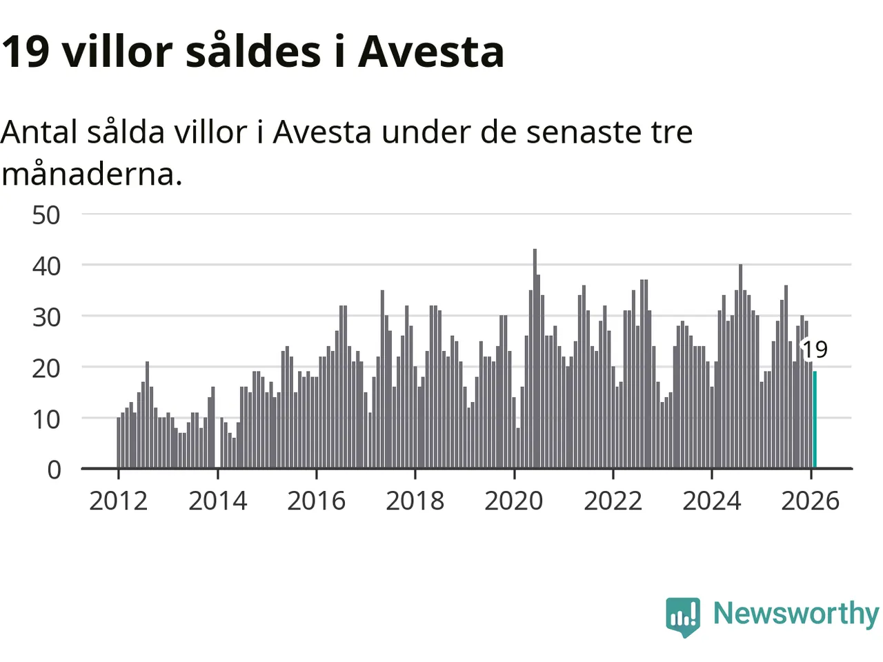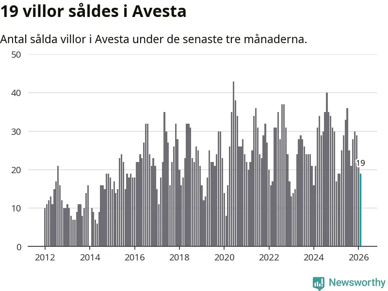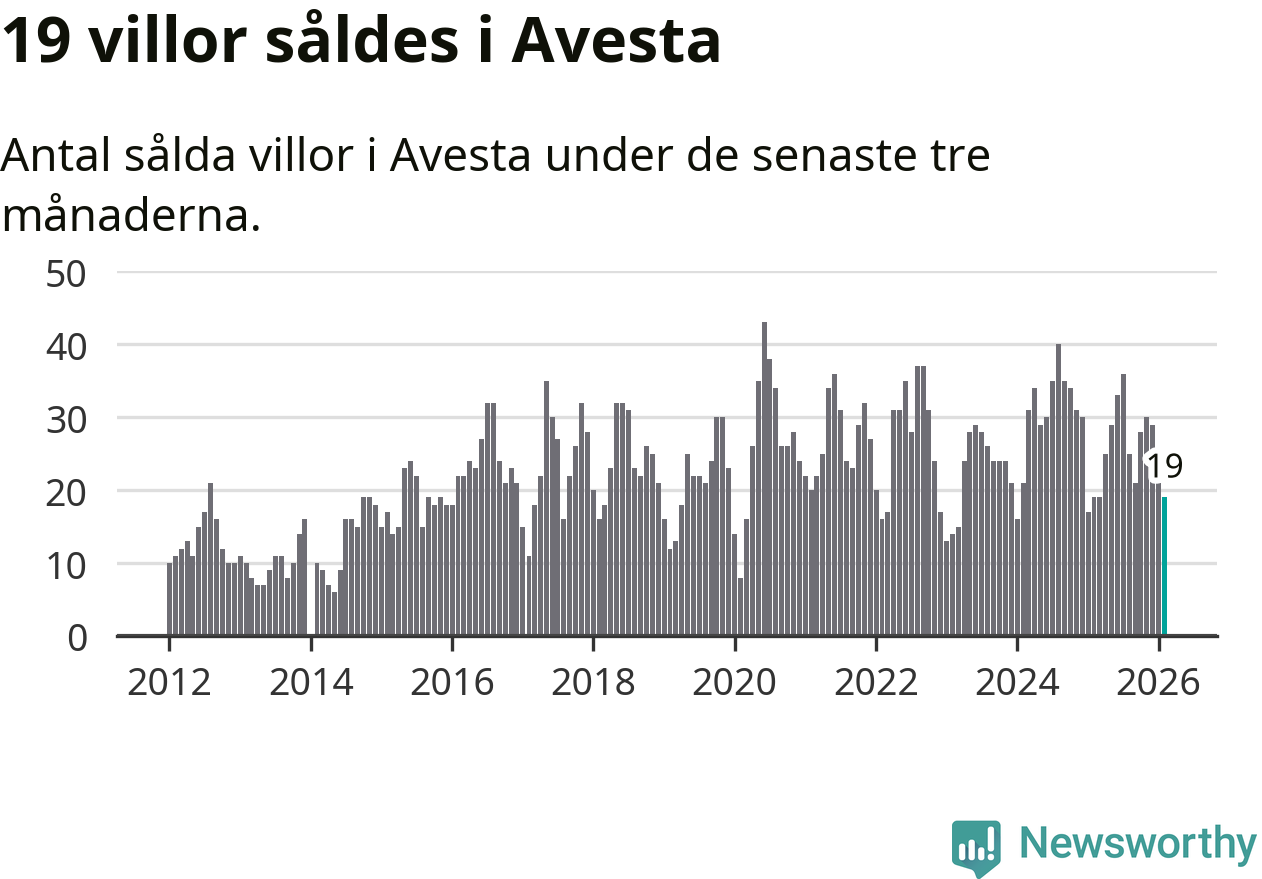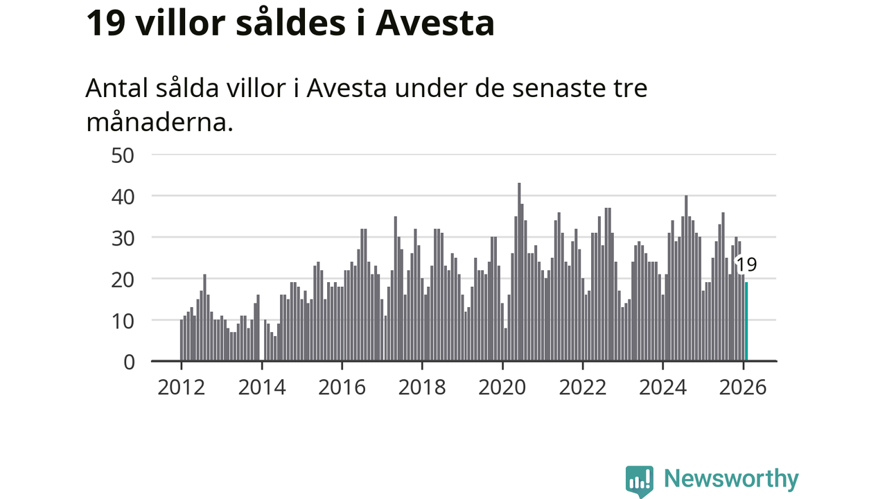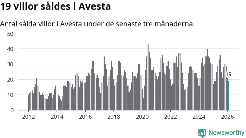 Mellan december och februari gjordes sammanlagt 19 affärer med villor i Avesta kommun. Det är lika många affärer som vid motsvarande tid i fjol.