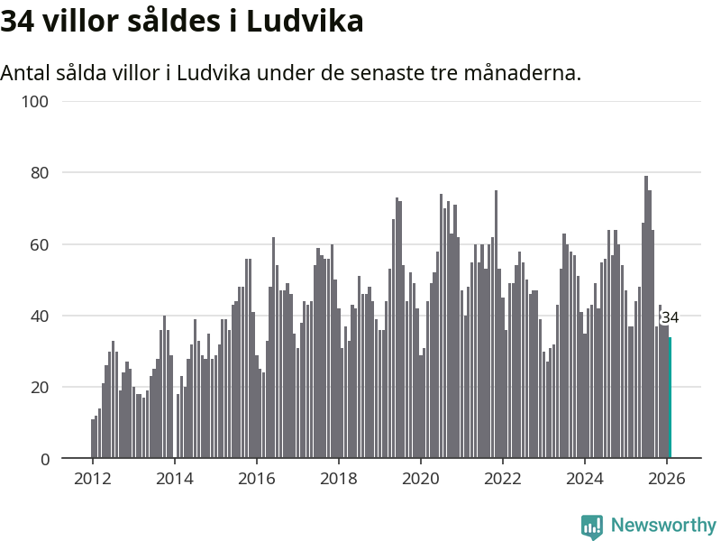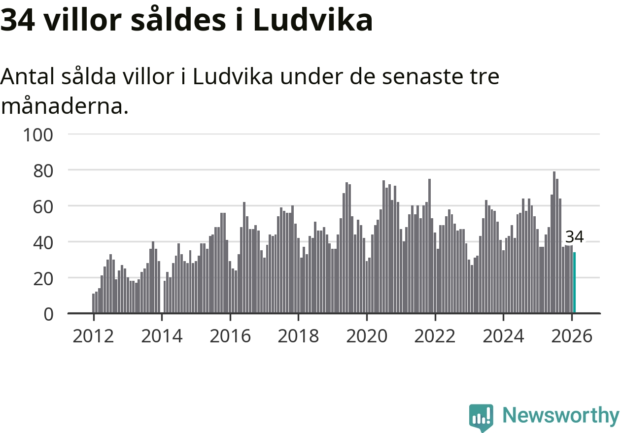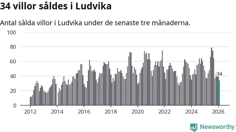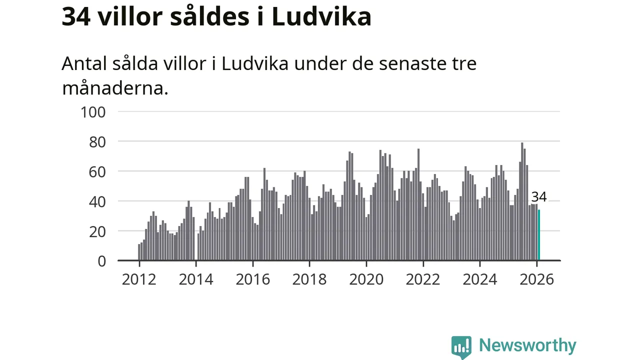 Sammanlagt såldes 34 villor i Ludvika kommun mellan december och februari till ett genomsnittligt pris på 1,2 miljoner kronor. I fjol gjordes 37 affärer vid den här tiden på året.
