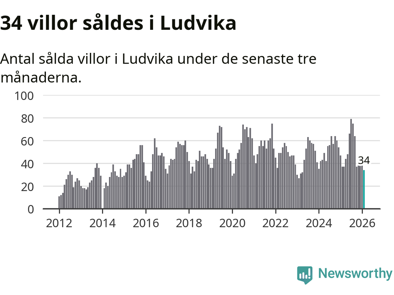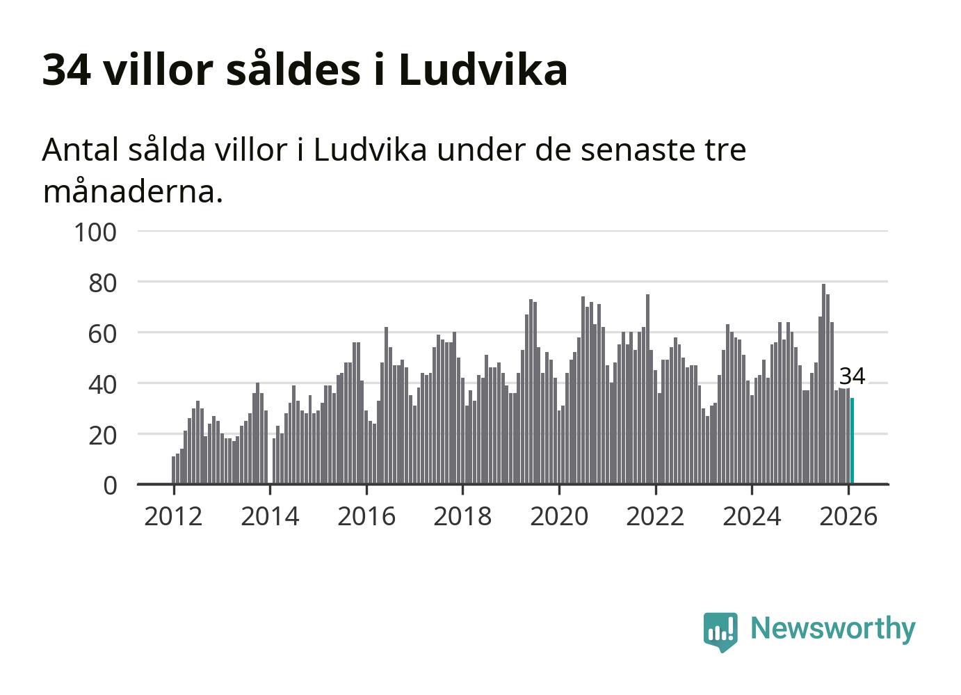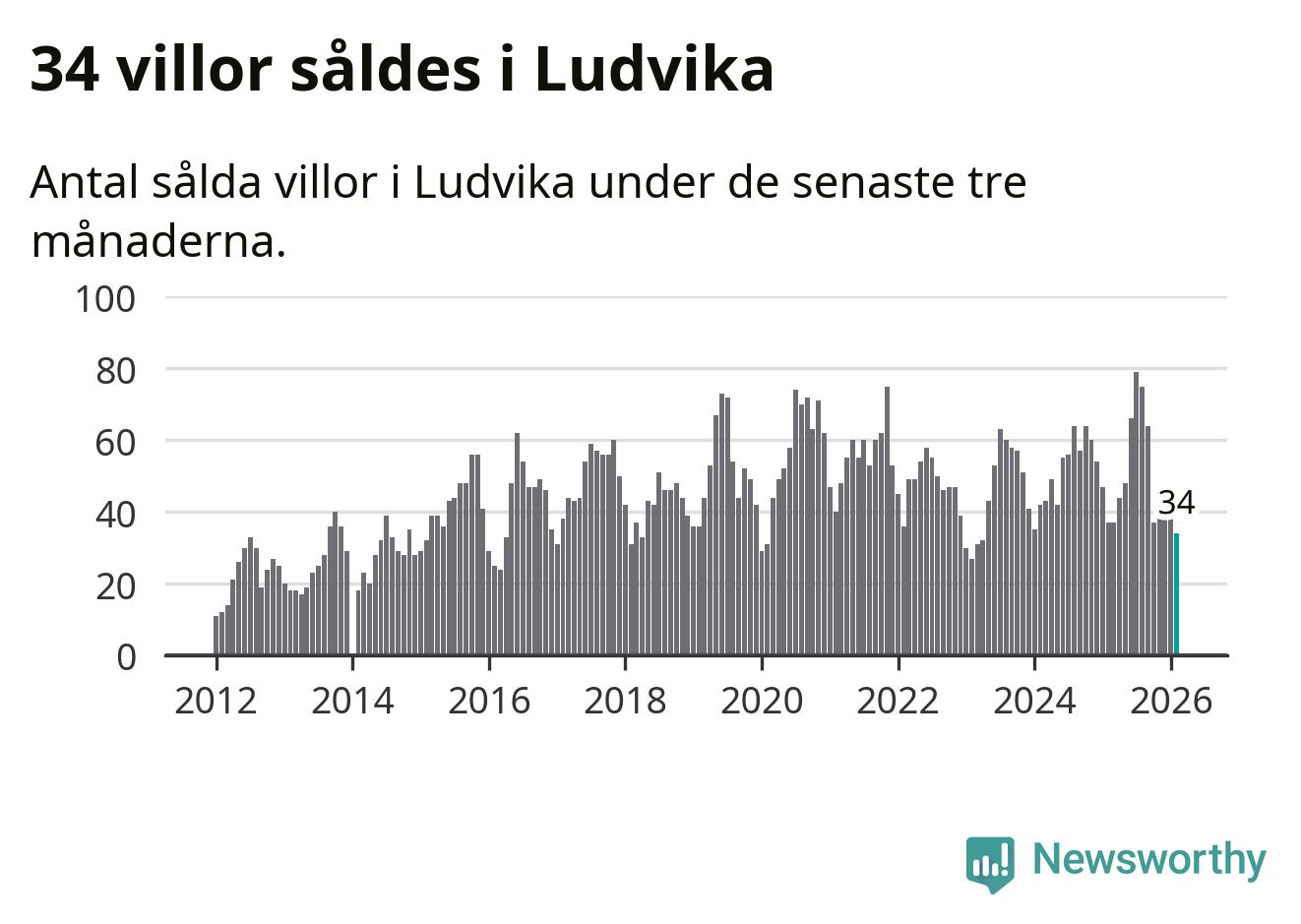 Sammanlagt såldes 34 villor i Ludvika kommun mellan december och februari till ett genomsnittligt pris på 1,2 miljoner kronor. I fjol gjordes 37 affärer vid den här tiden på året.