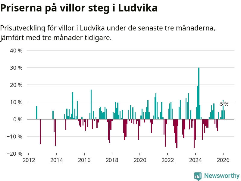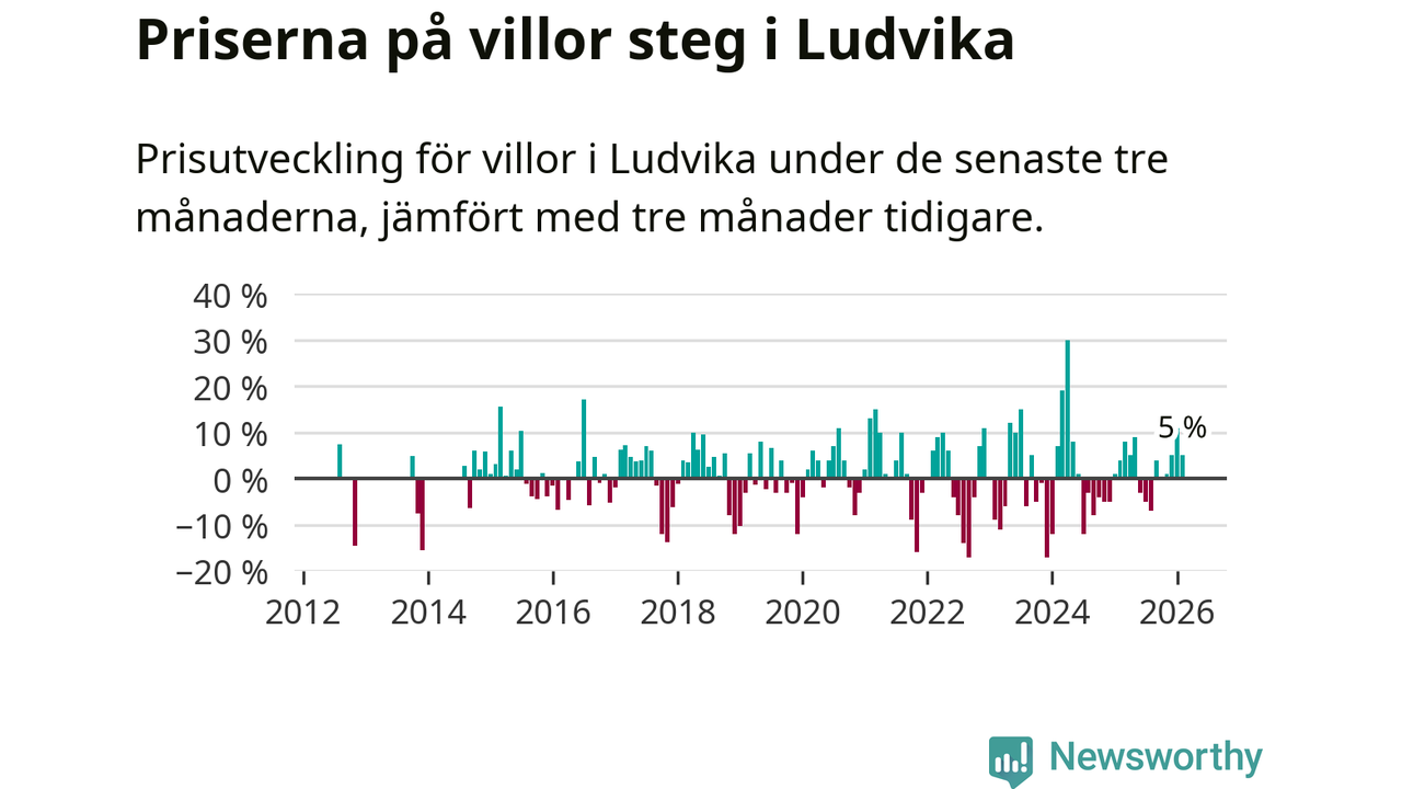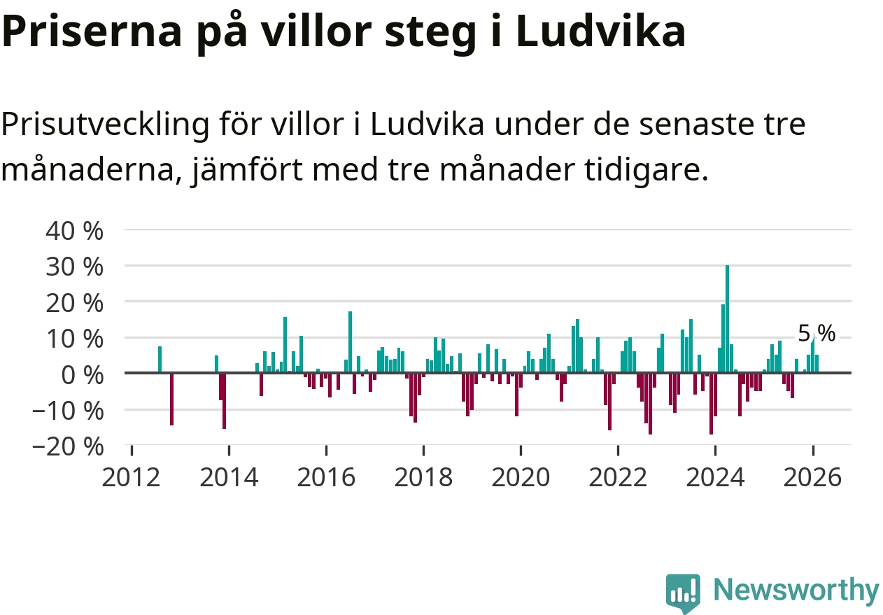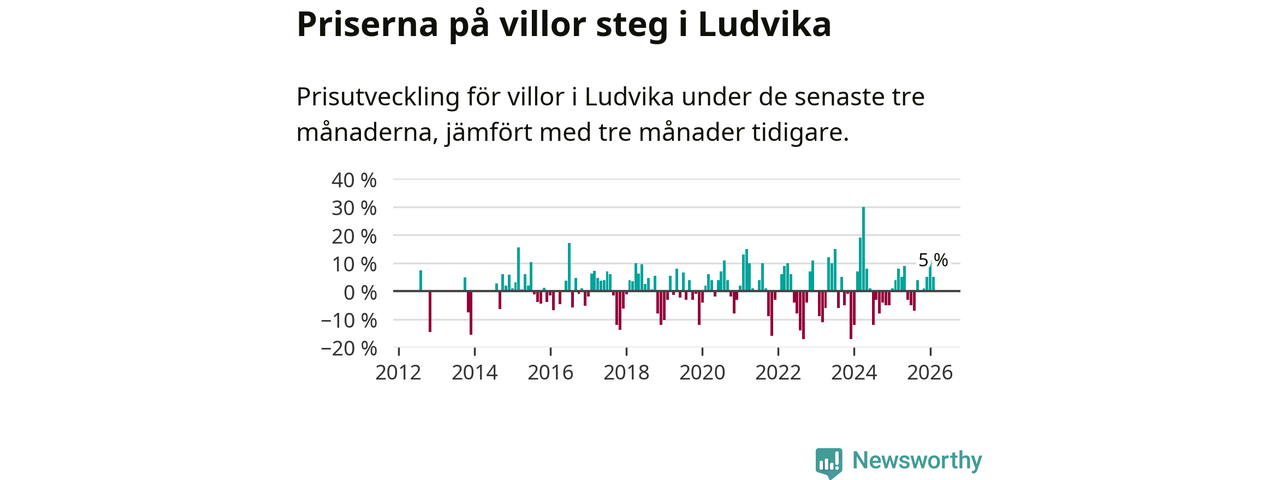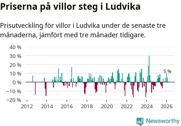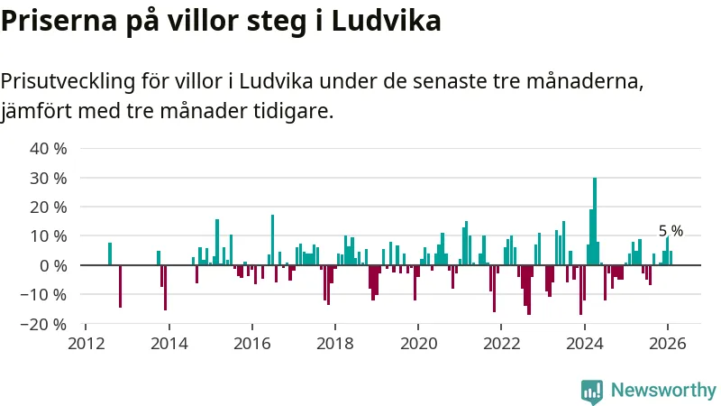 Villapriserna har gått upp i Ludvika kommun. Medelpriset på försäljningarna under de senaste tre månaderna visar på en uppgång med 5 procent.