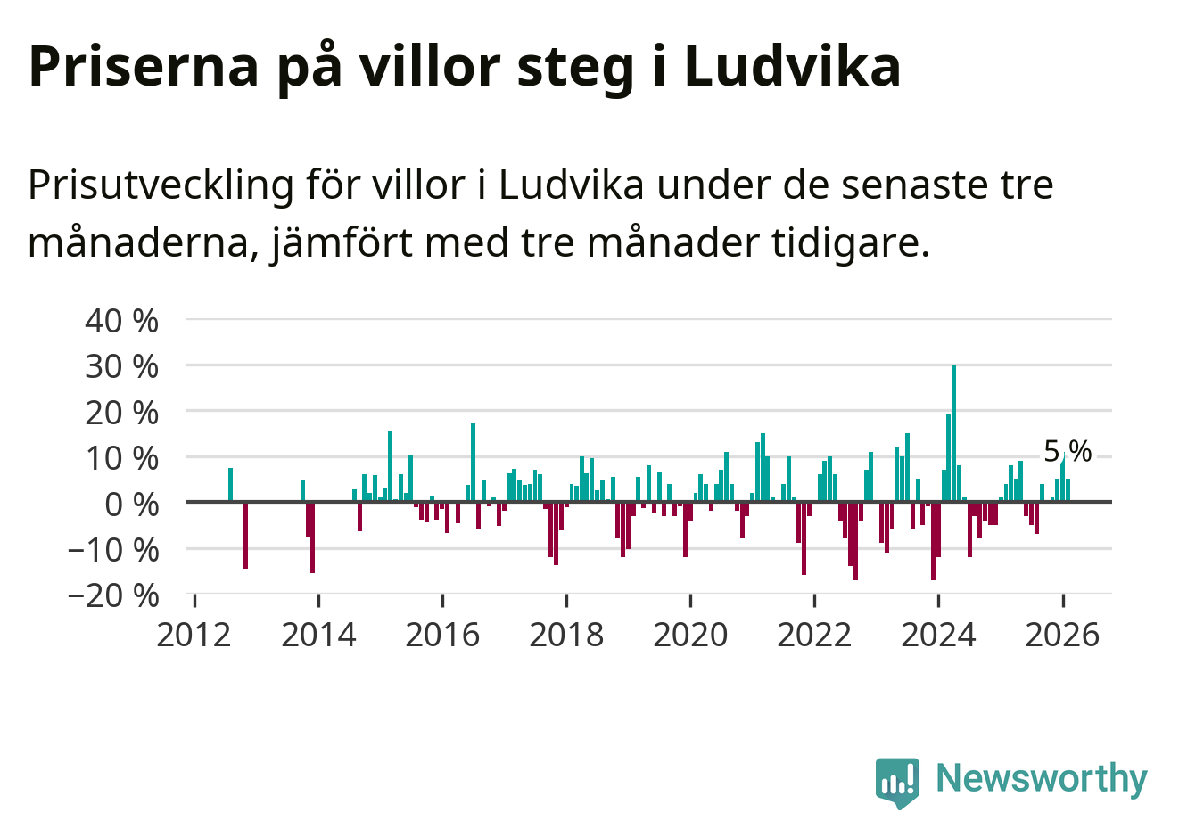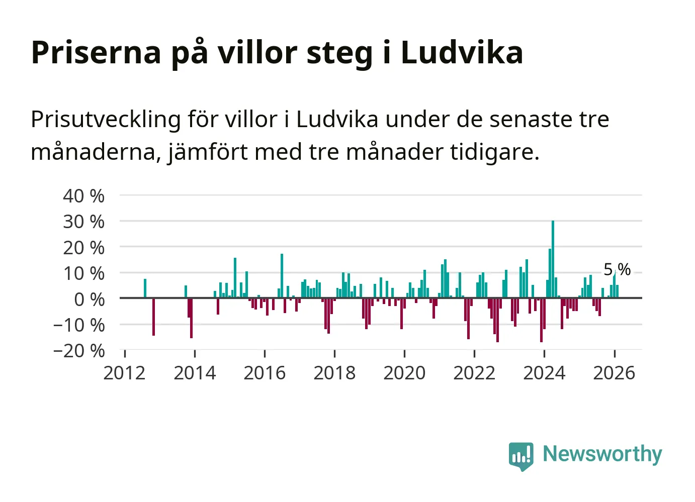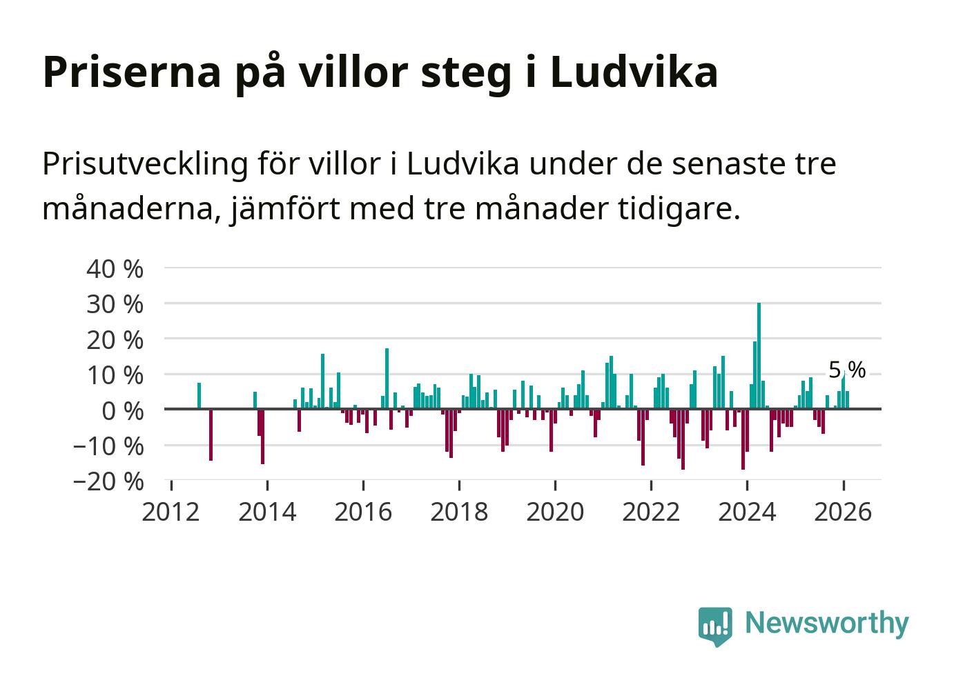 Villapriserna har gått upp i Ludvika kommun. Medelpriset på försäljningarna under de senaste tre månaderna visar på en uppgång med 5 procent.