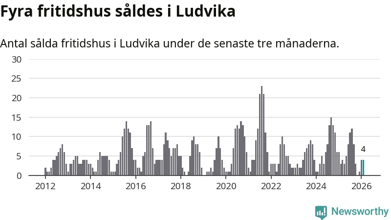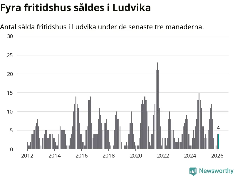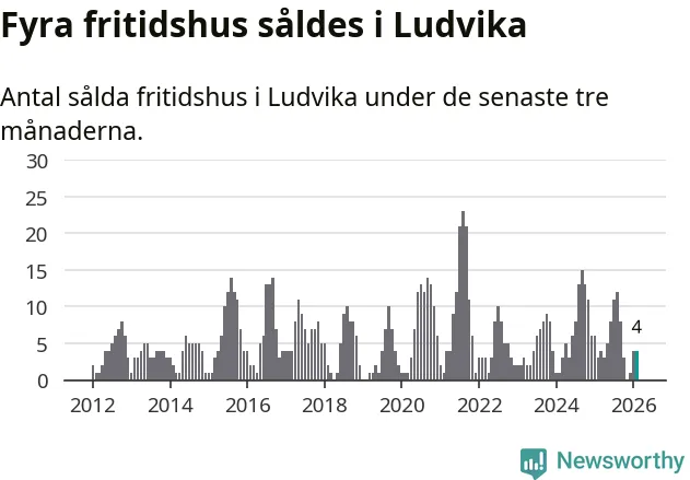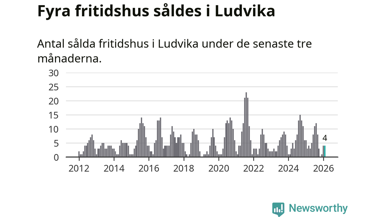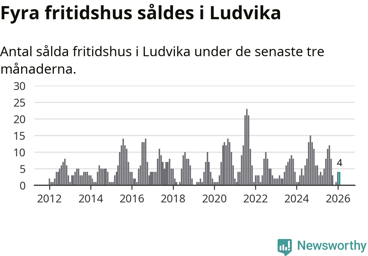 Mellan december och februari gjordes sammanlagt fyra affärer med fritidshus i Ludvika kommun. Det kan jämföras med tre vid motsvarande tid i fjol.