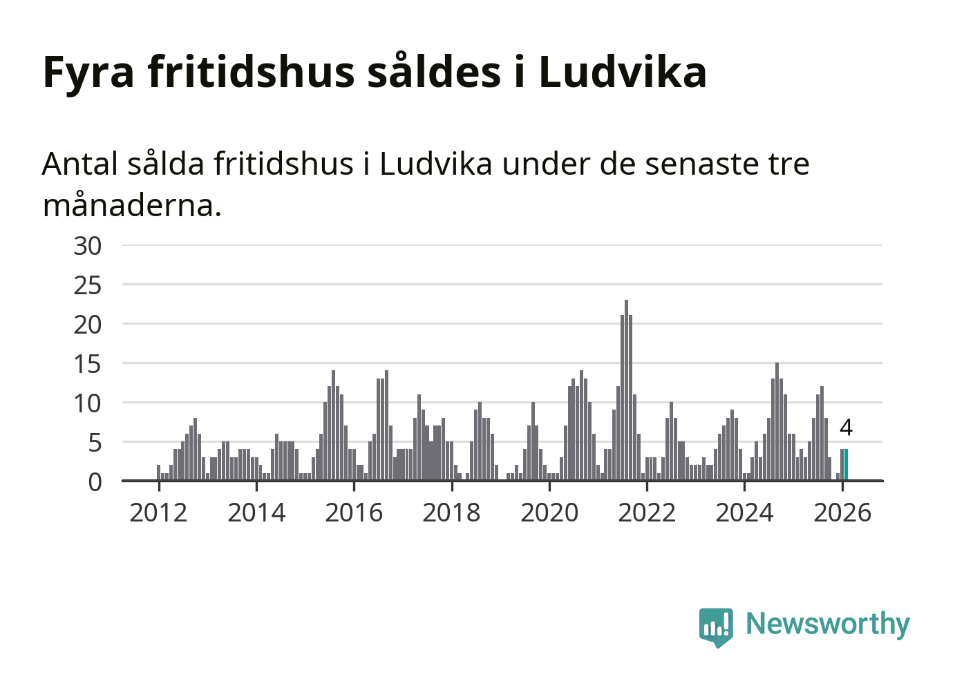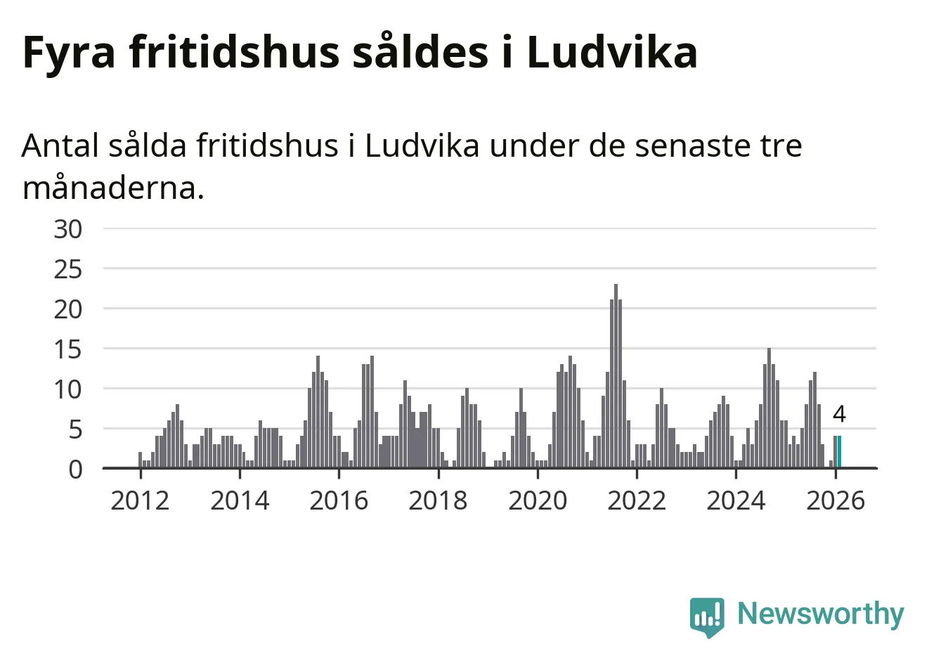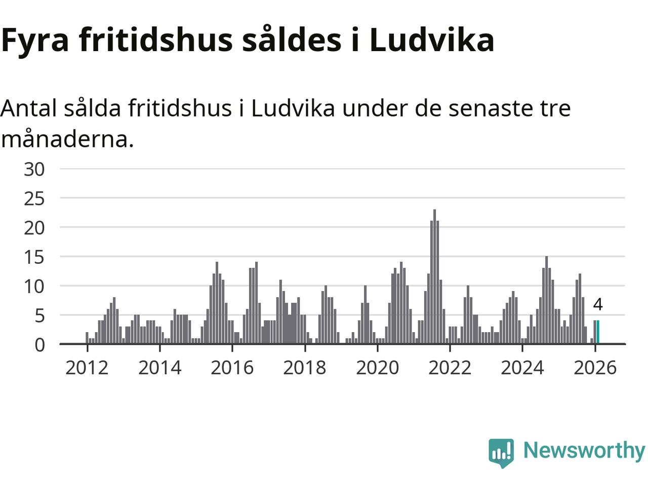 Mellan december och februari gjordes sammanlagt fyra affärer med fritidshus i Ludvika kommun. Det kan jämföras med tre vid motsvarande tid i fjol.