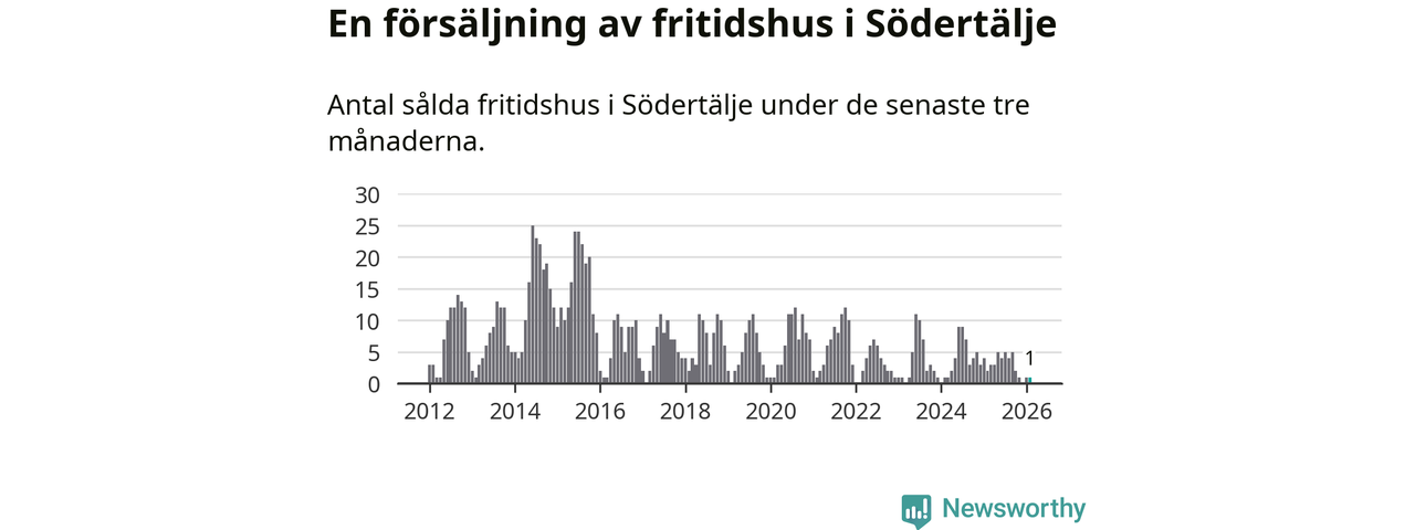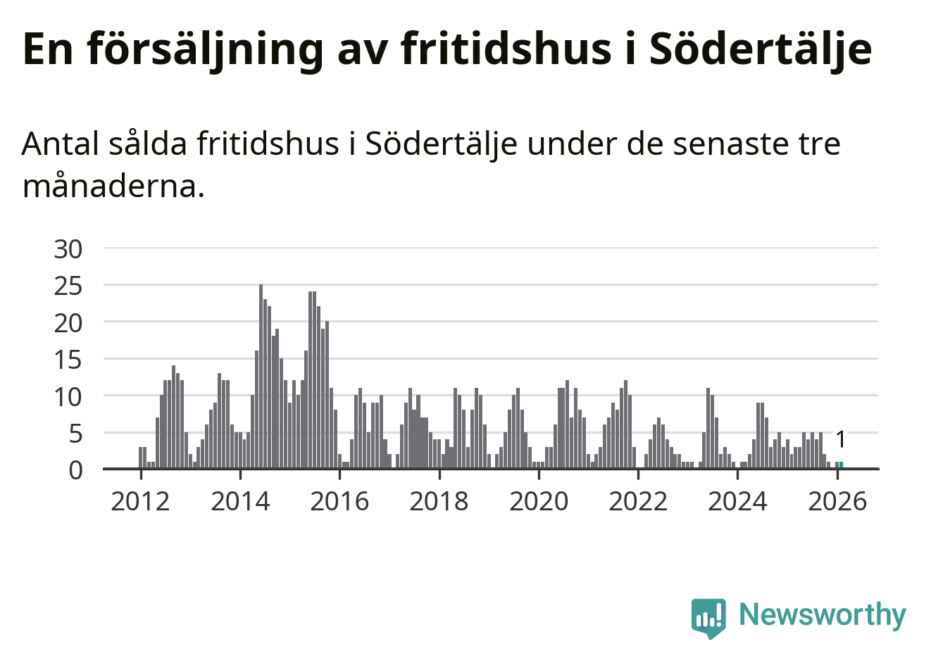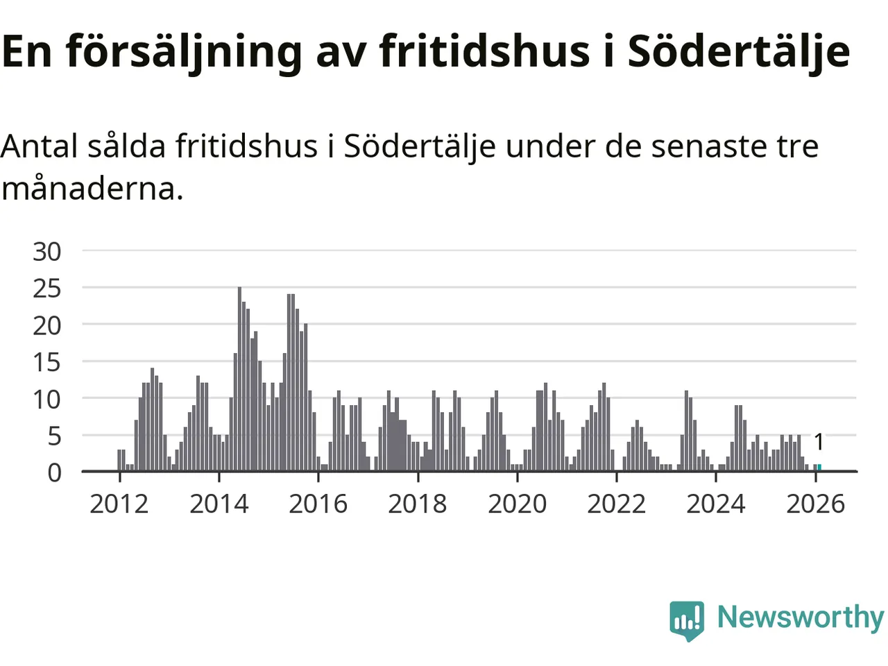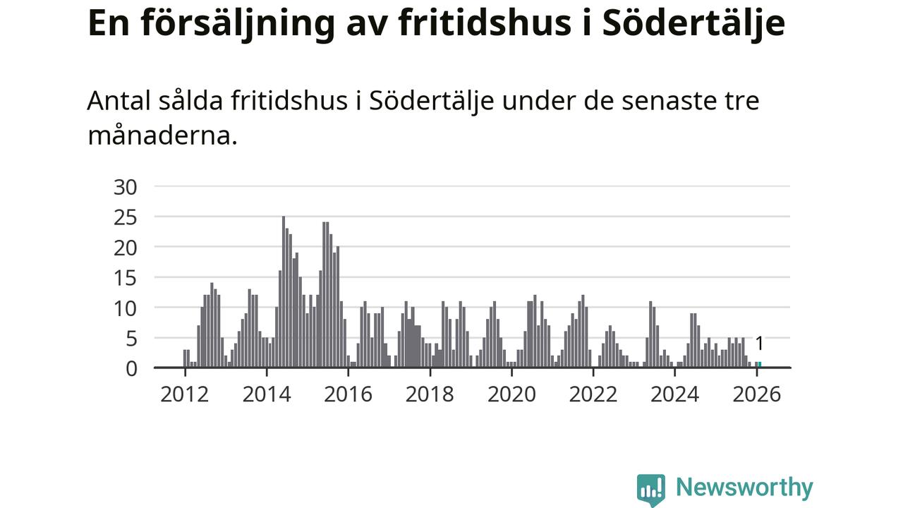 Mellan december och februari gjordes sammanlagt en affär med fritidshus i Södertälje kommun. Det kan jämföras med två vid motsvarande tid i fjol.