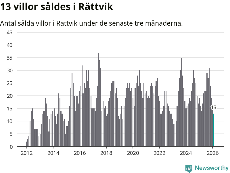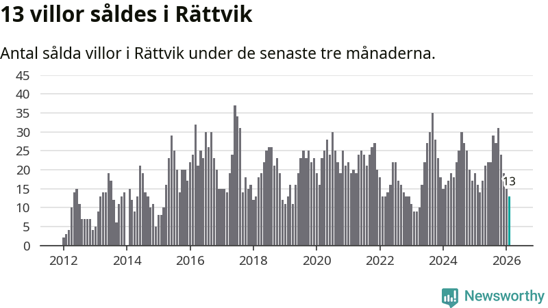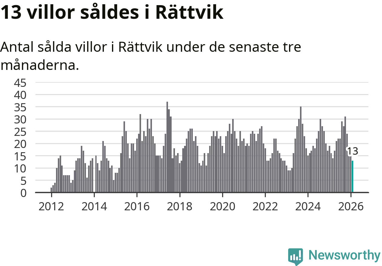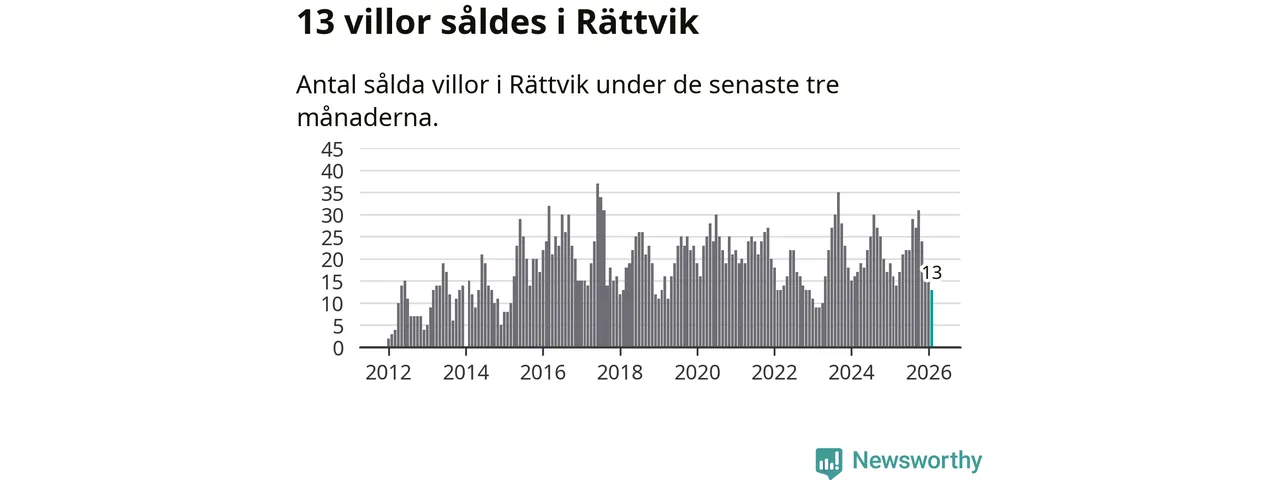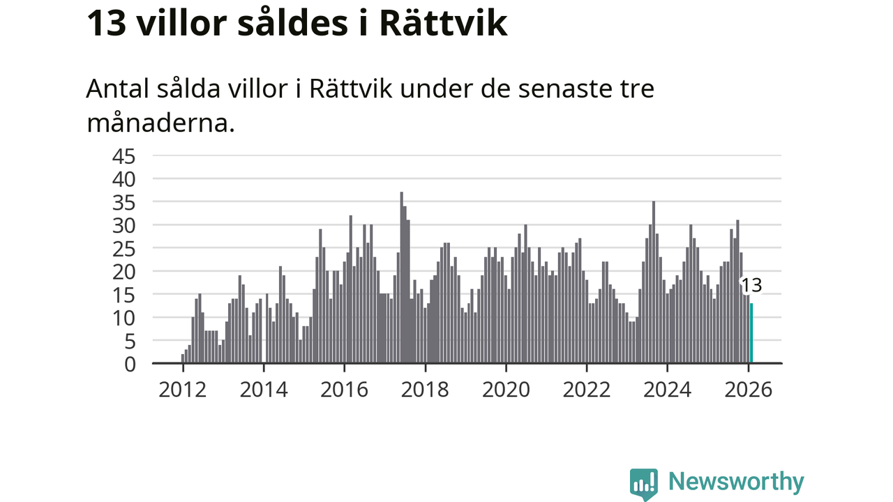 Mellan december och februari gjordes sammanlagt 13 affärer med villor i Rättviks kommun. Det kan jämföras med 16 vid motsvarande tid i fjol.