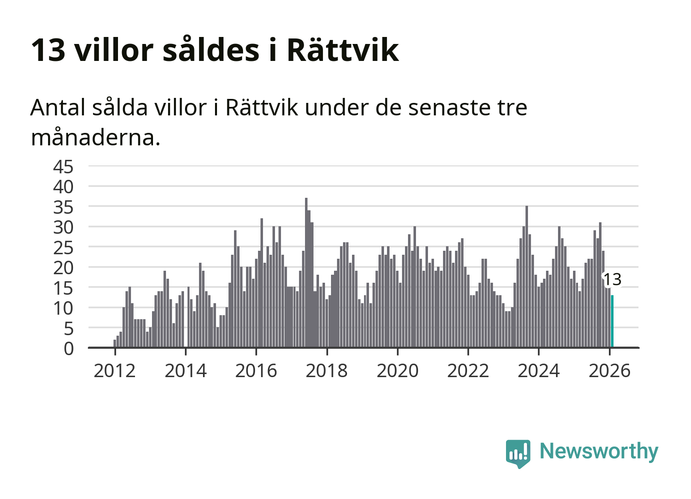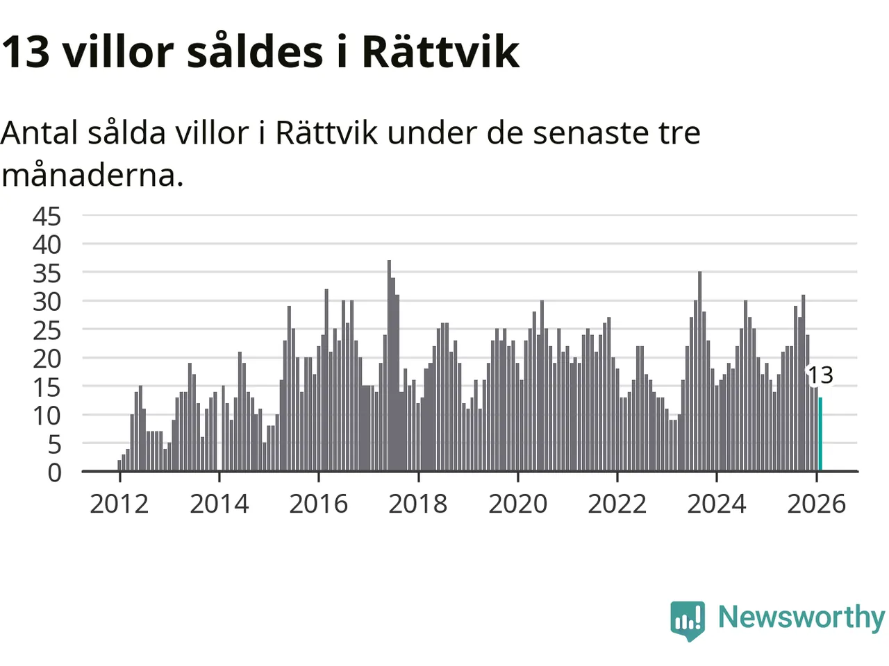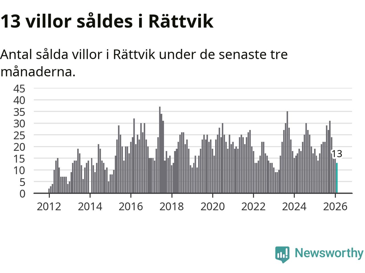 Mellan december och februari gjordes sammanlagt 13 affärer med villor i Rättviks kommun. Det kan jämföras med 16 vid motsvarande tid i fjol.