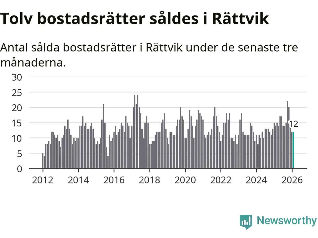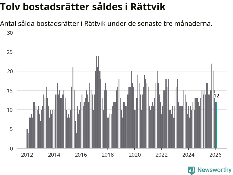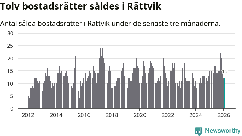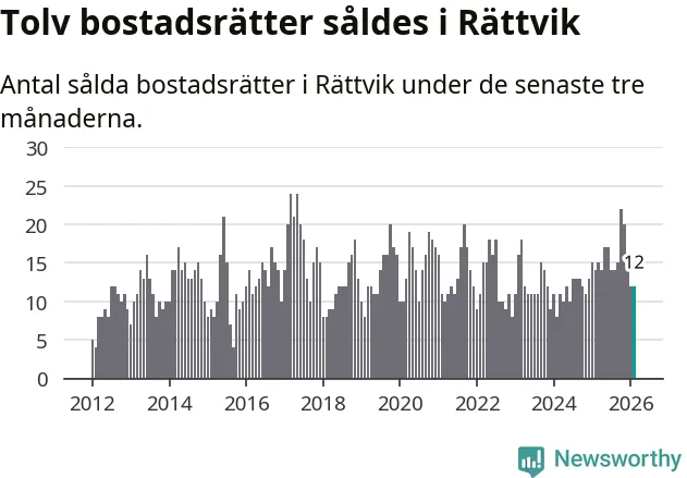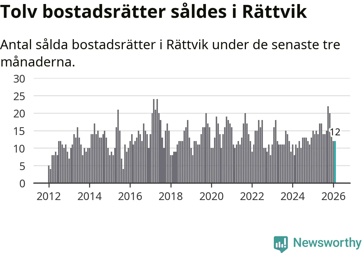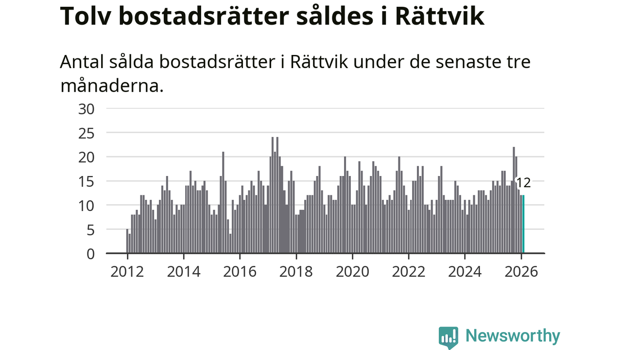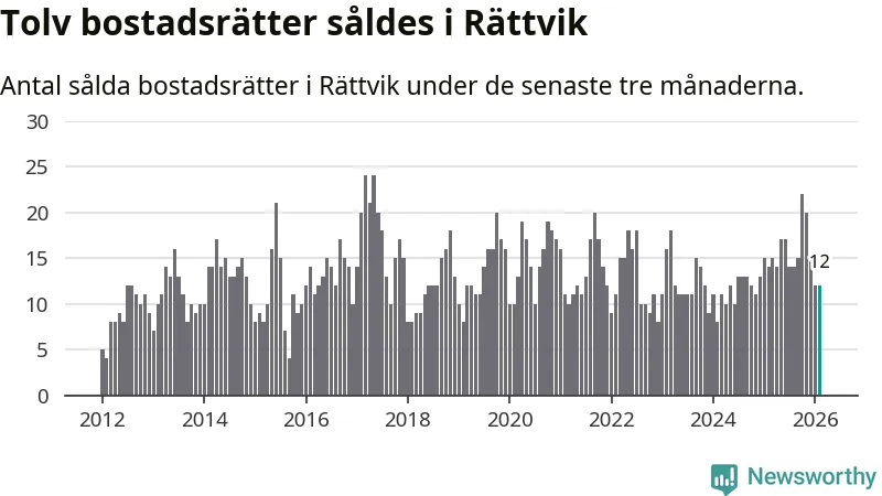 Mellan december och februari gjordes sammanlagt tolv affärer med bostadsrätter i Rättviks kommun. Det kan jämföras med 14 vid motsvarande tid i fjol.