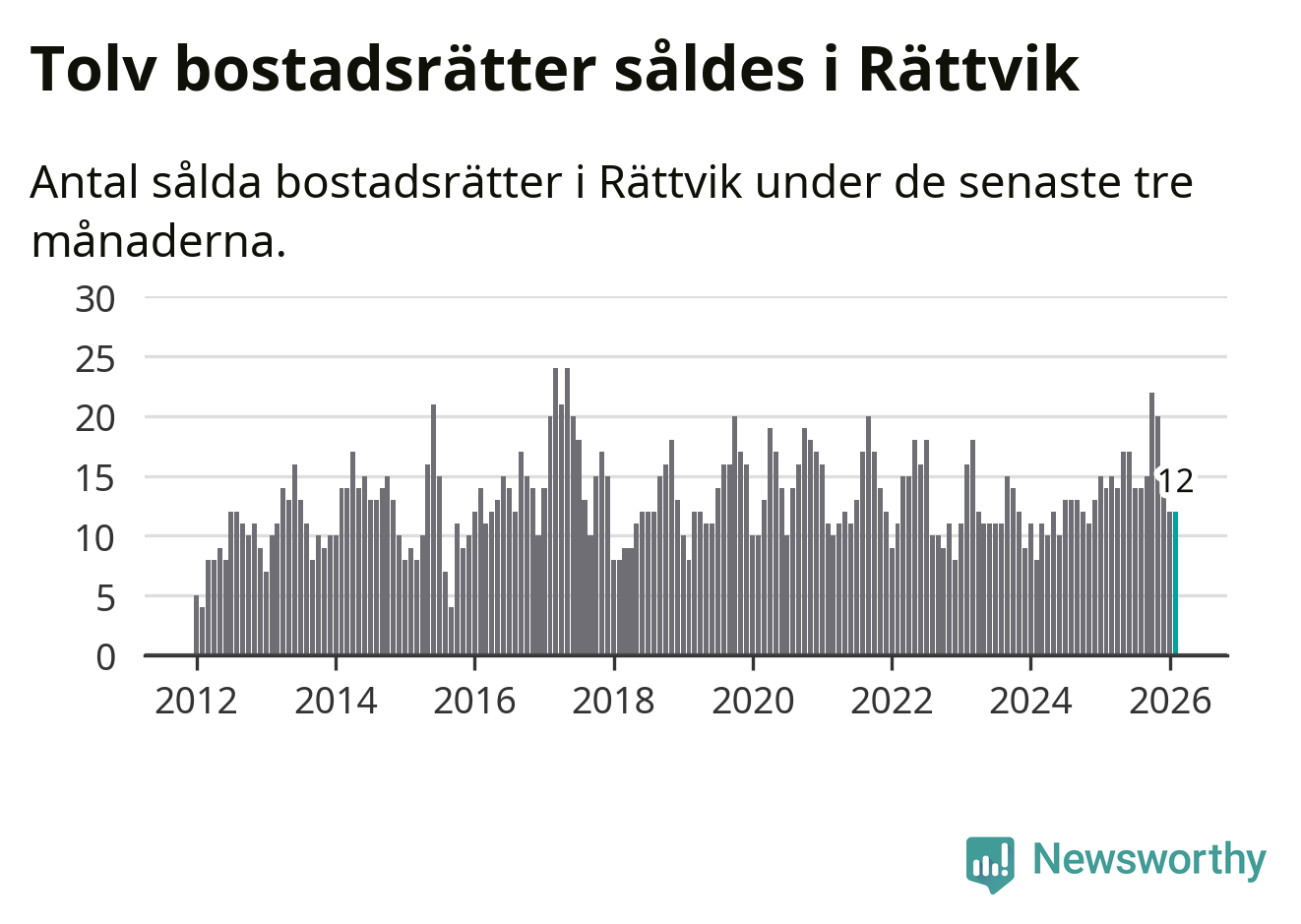 Graf: Antal sålda bostadsrätter i Rättviks kommun