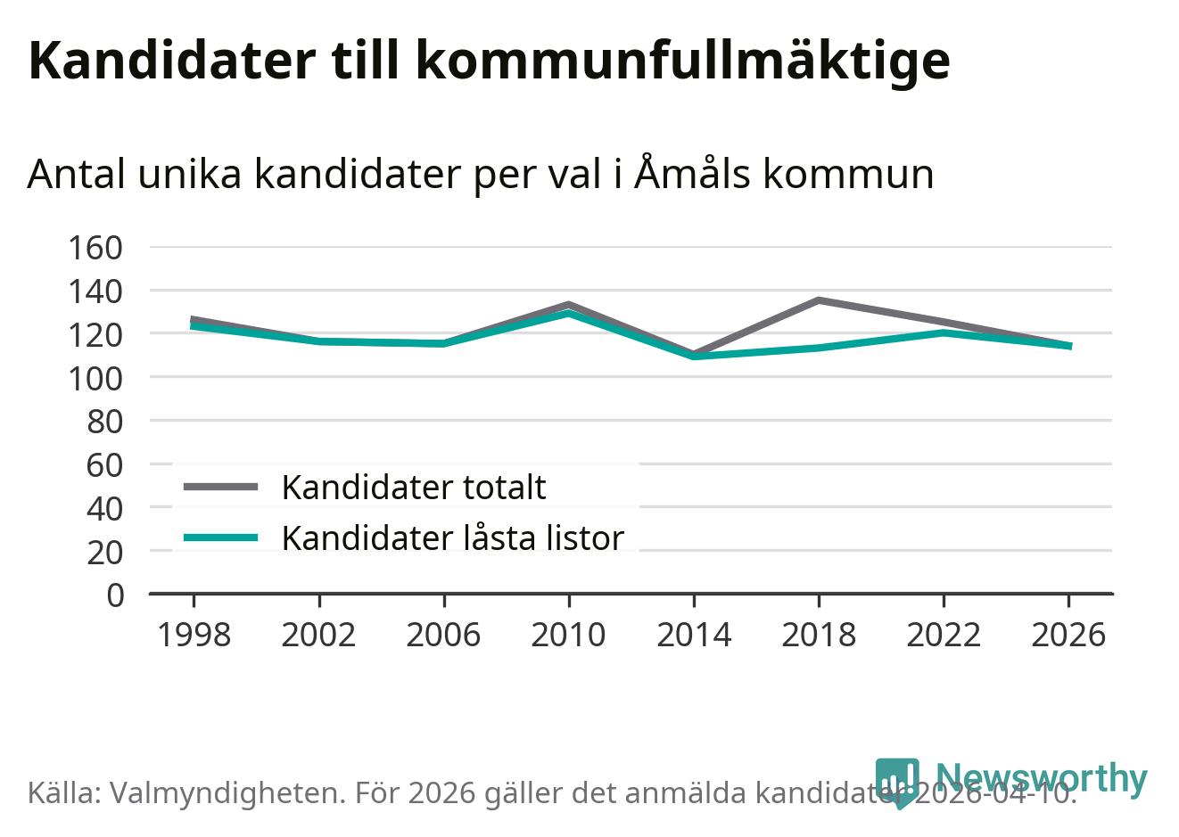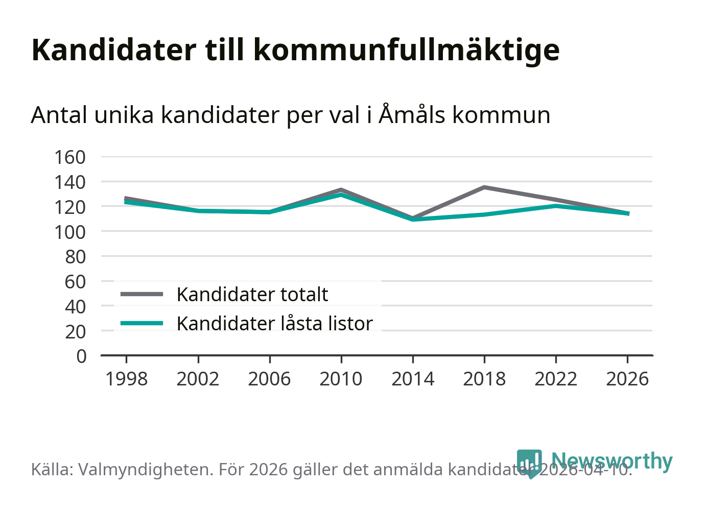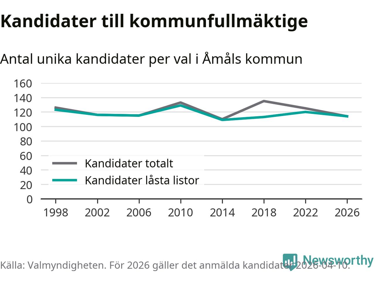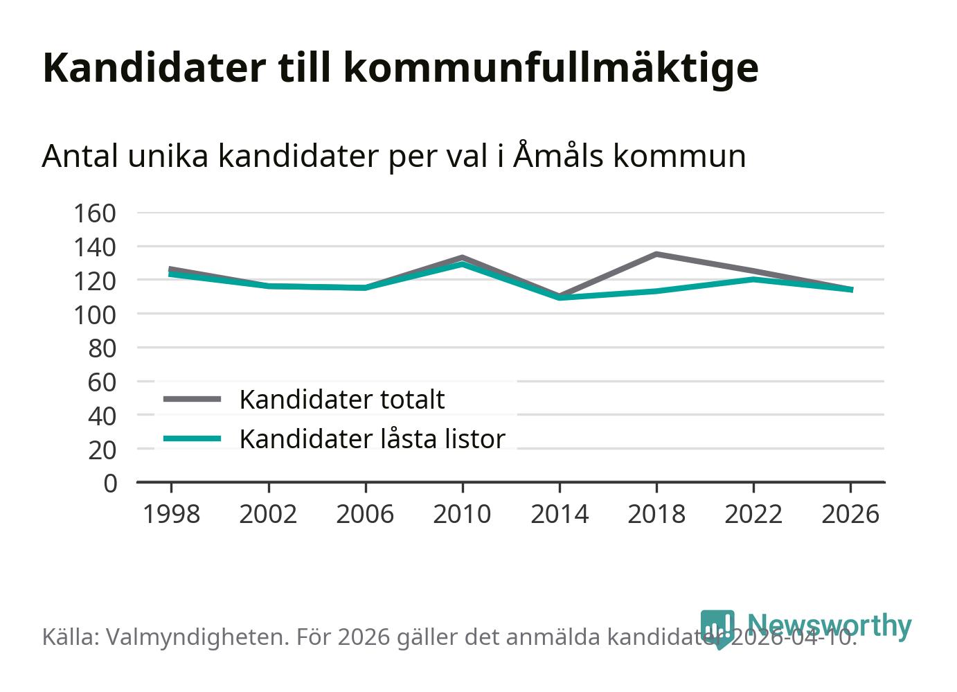 På torsdagen var det deadline för partier med låsta listor att registrera sina kandidater inför höstens val. Till valet till kommunfullmäktige i Åmål är 114 kandidater anmälda på sådana listor, vilket är sex färre än i valet 2022.