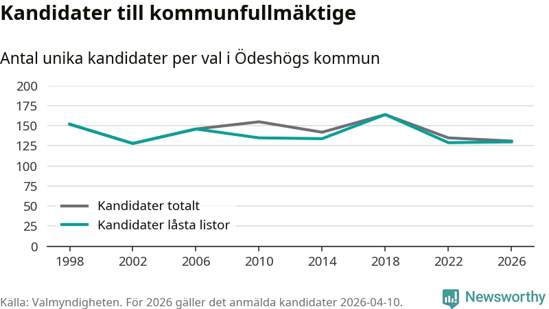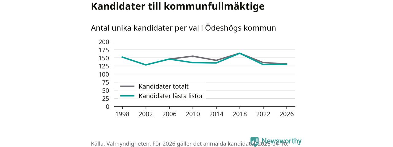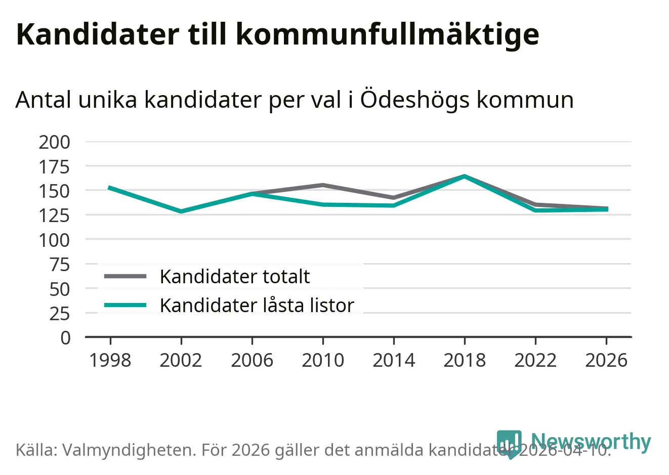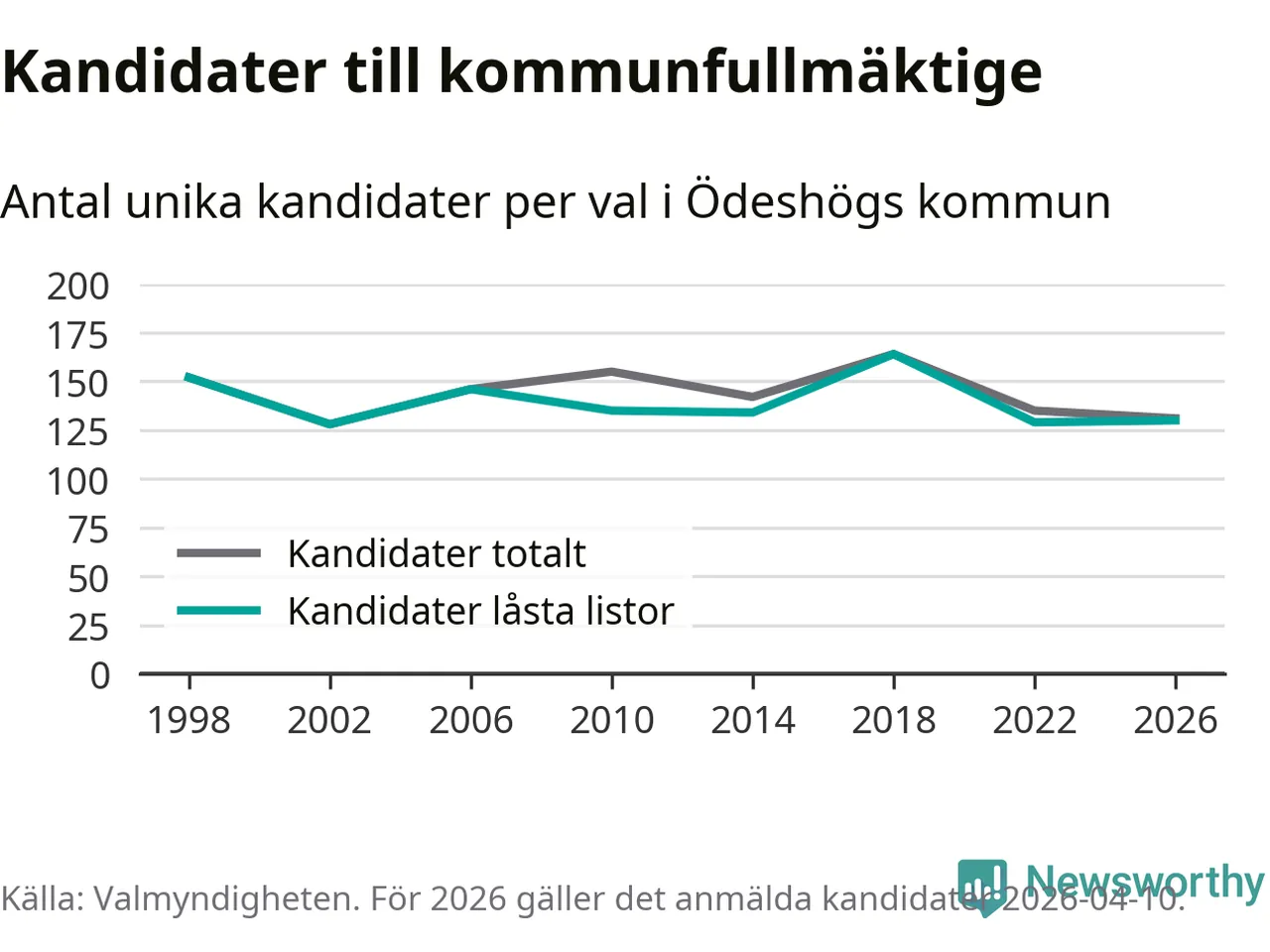 På torsdagen var det deadline för partier med låsta listor att registrera sina kandidater inför höstens val. Till valet till kommunfullmäktige i Ödeshög är 130 kandidater anmälda på sådana listor, vilket är ett fler än i valet 2022.
