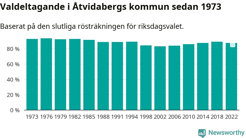 Åtvidaberg tillhör Östergötlands läns valkrets. Där var valdeltagandet förra valet 85,3 procent. I hela riket landade valdeltagandet 2022 på 84,21 procent, att jämföra med 87,18 procent 2018.