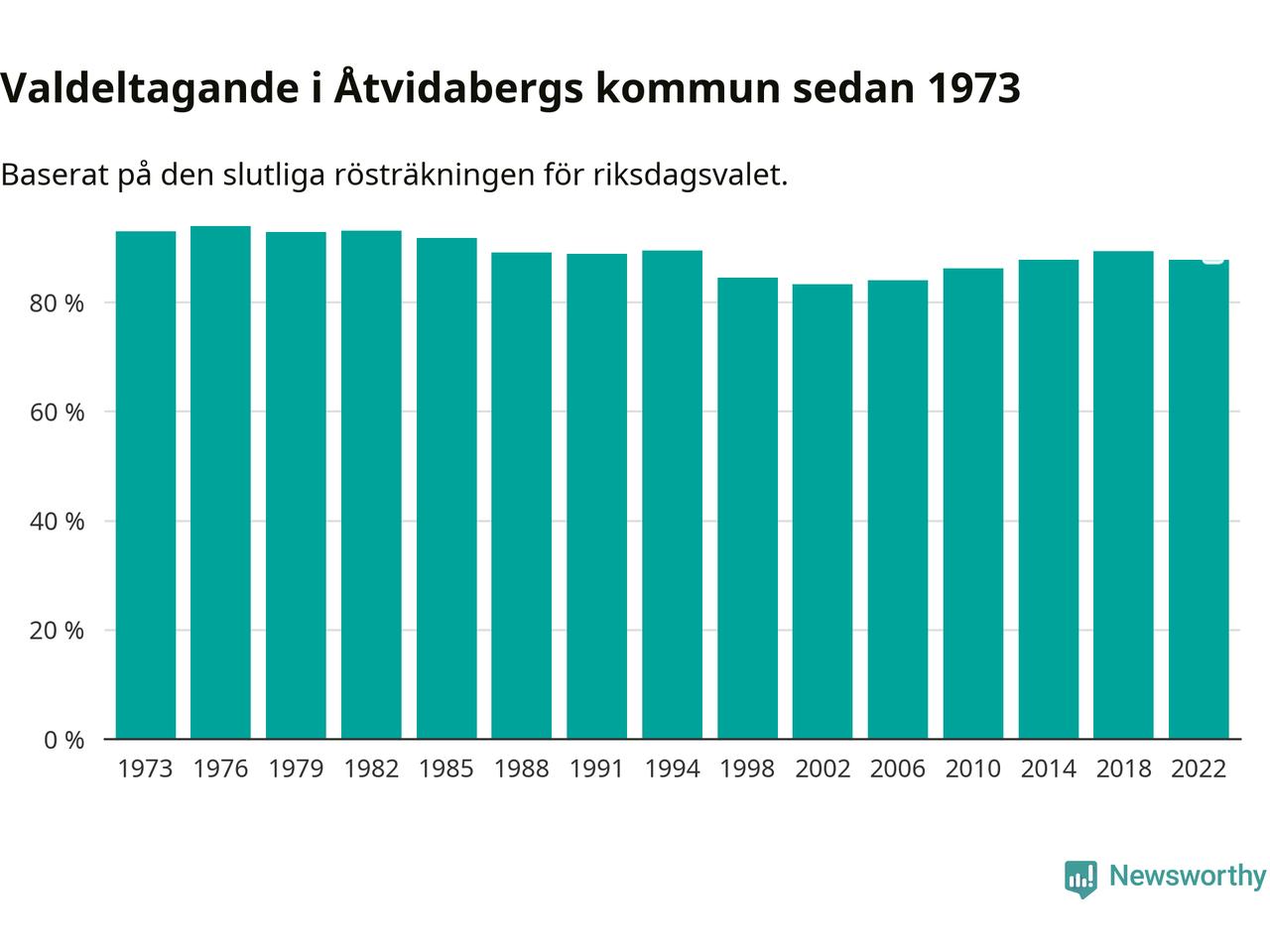 Högst valdeltagande i Östergötlands läns valkrets, som Åtvidaberg tillhör, noterades i Ydre kommun, där 89,6 procent röstade i riksdagsvalet. Lägst var valdeltagande i valkretsen i Norrköpings kommun, 82,6 procent.