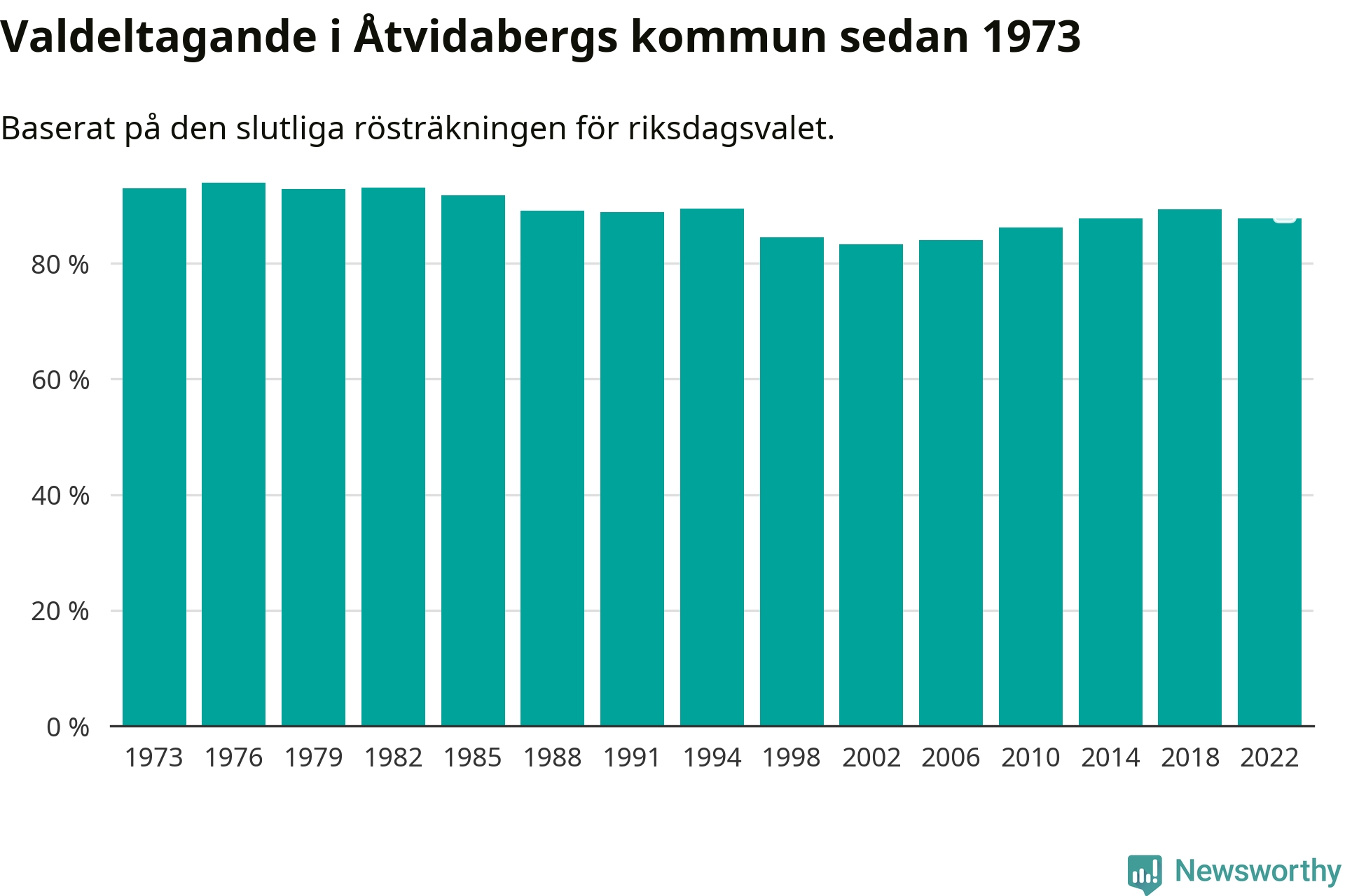 Valdeltagande i riksdagsvalet, i valdistrikten i Åtvidaberg